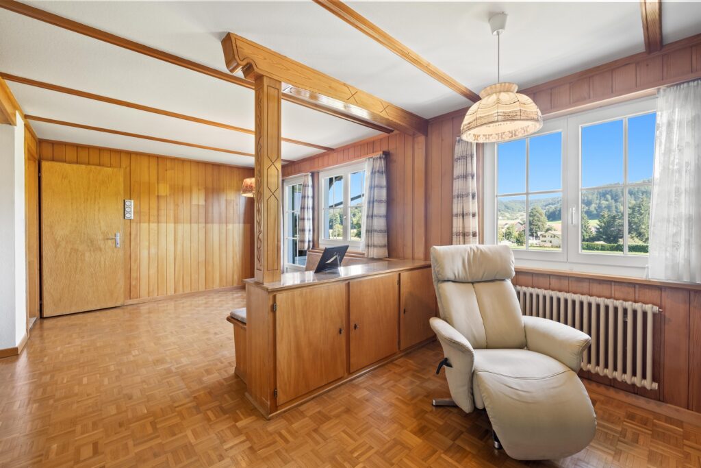 In tranquil, but very well located Gränichen we sell at very idyllic location on the edge of the forest a detached, char- mantes 5.5 room detached house in chalet style. Lovers of old buildings with some craftsmanship skill and animal friends will enjoy this opportunity in a special way.