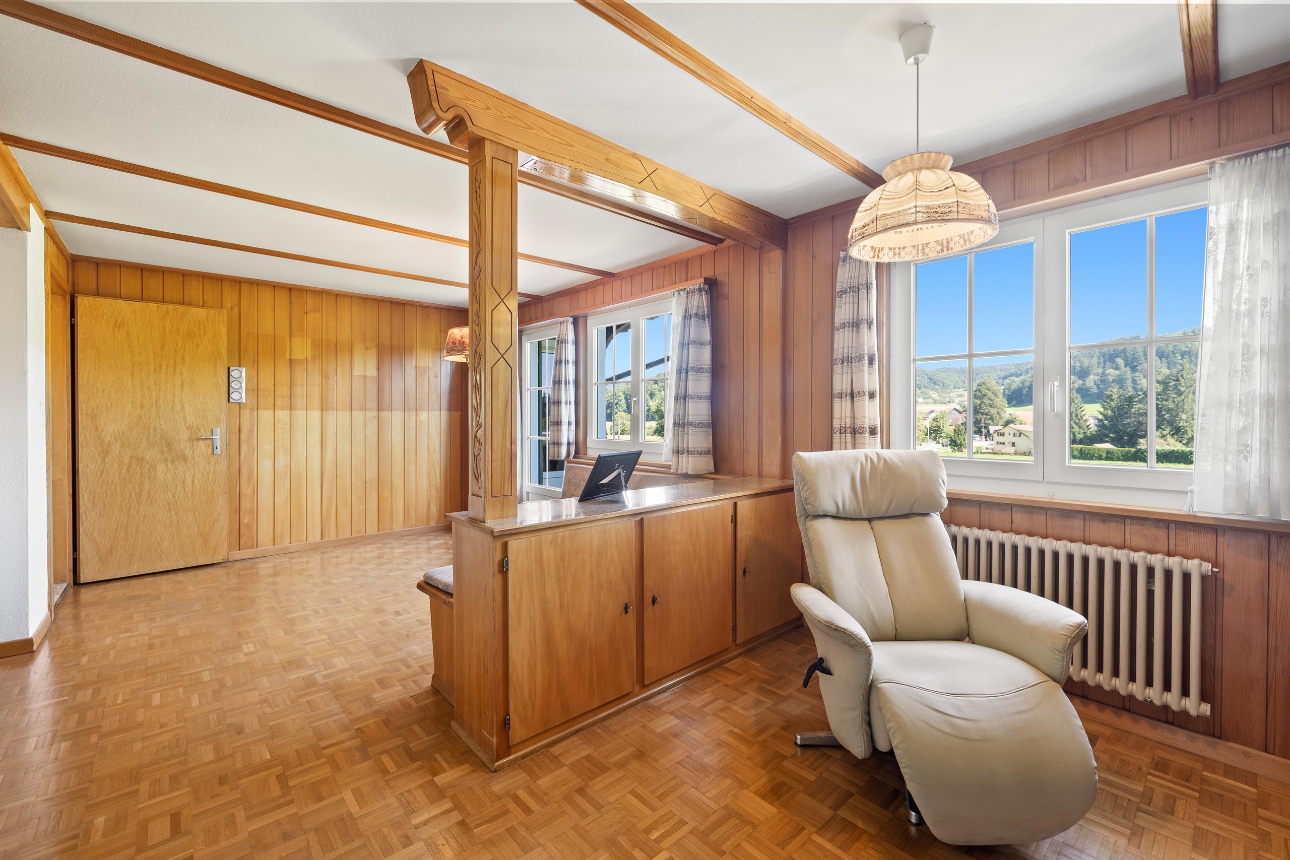 - Living feeling: like in a vacation home in the Bernese Oberland: chalet construction with lots of wood, plus a tritto stove – more cozy doesn't go