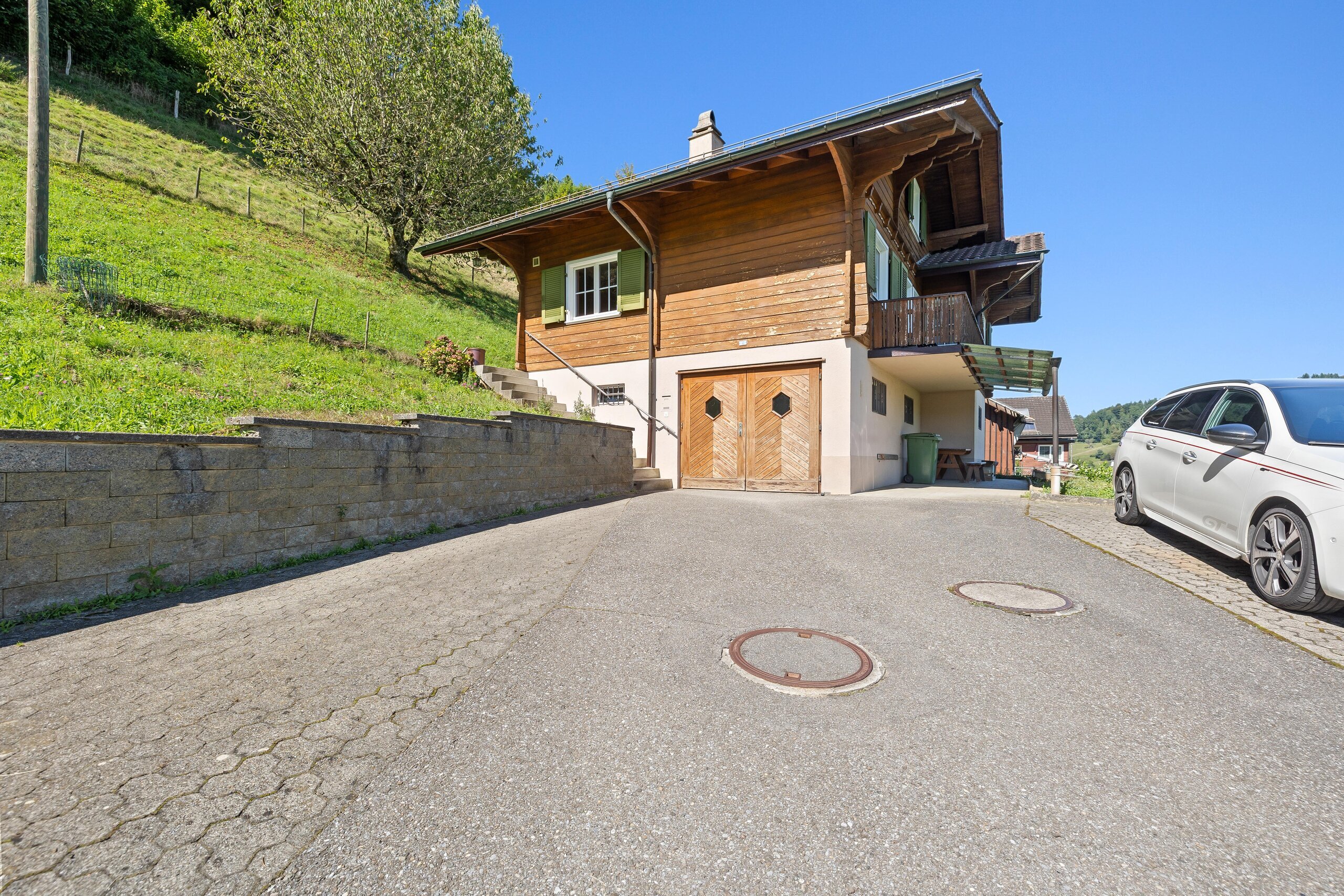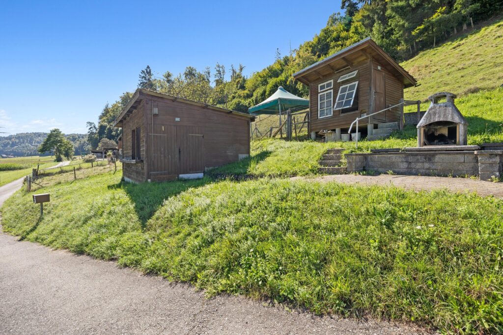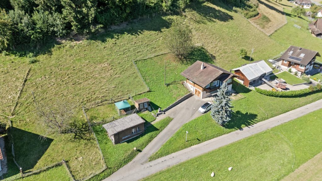 - Plot area: Lush plot area of total 2'055 m2 on two plots in the agricultural zone (not subject to the BGBB – perfectly suitable for keeping animals – goats, chickens or even horses?