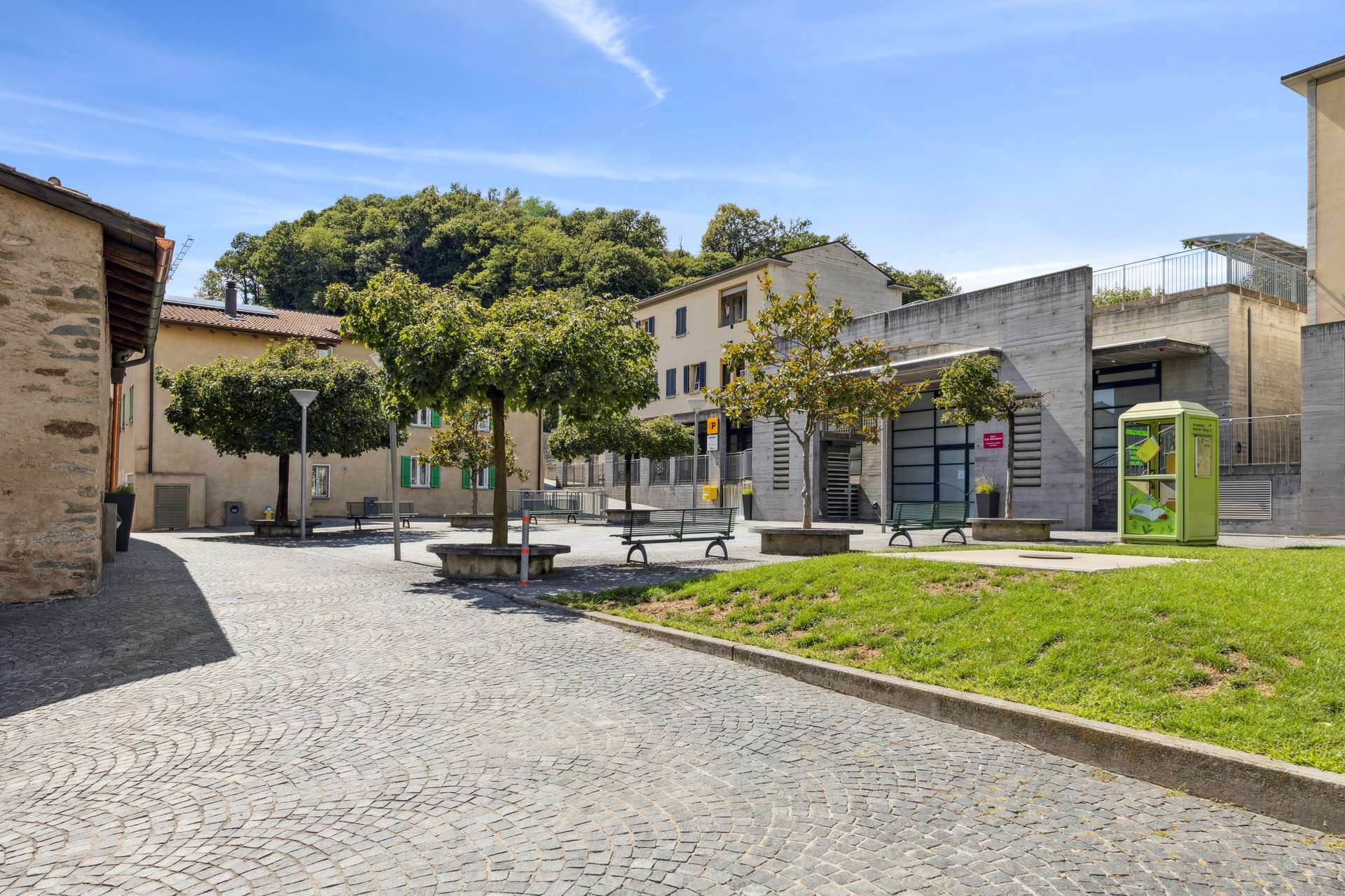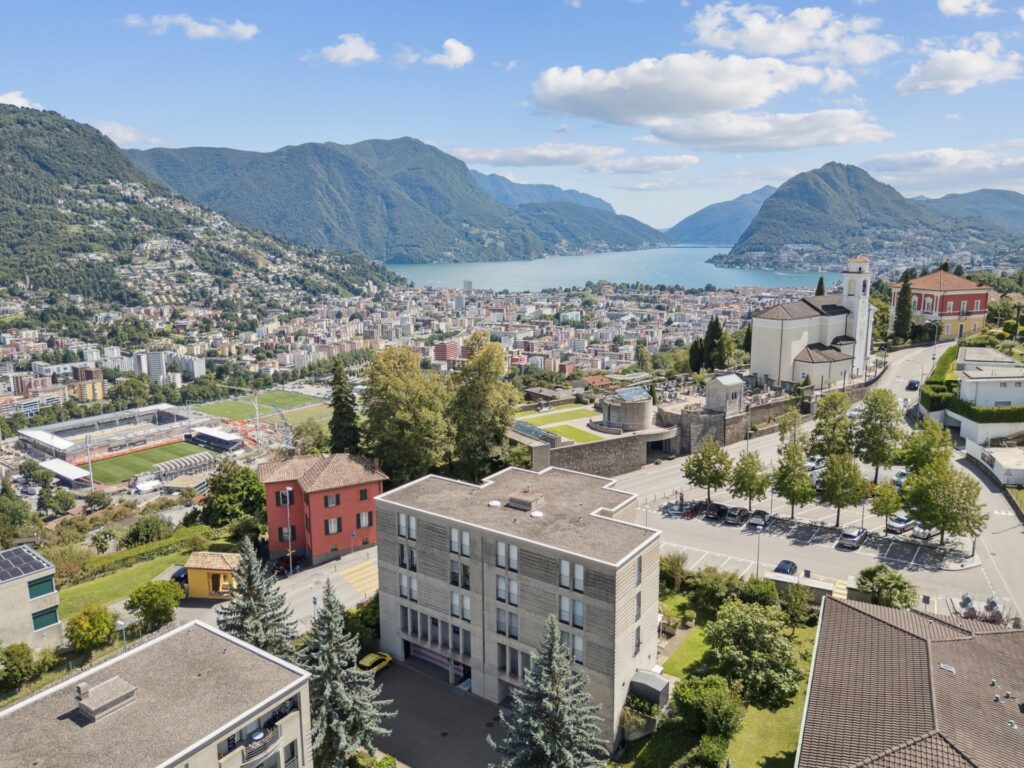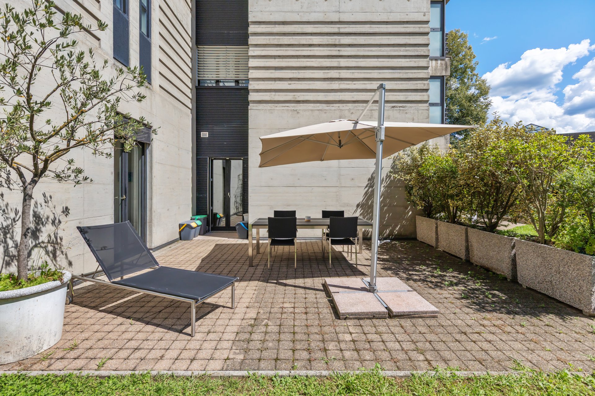 This garden apartment combines modern architecture, high living comfort and attractive potential in a sunny location above Lugano.