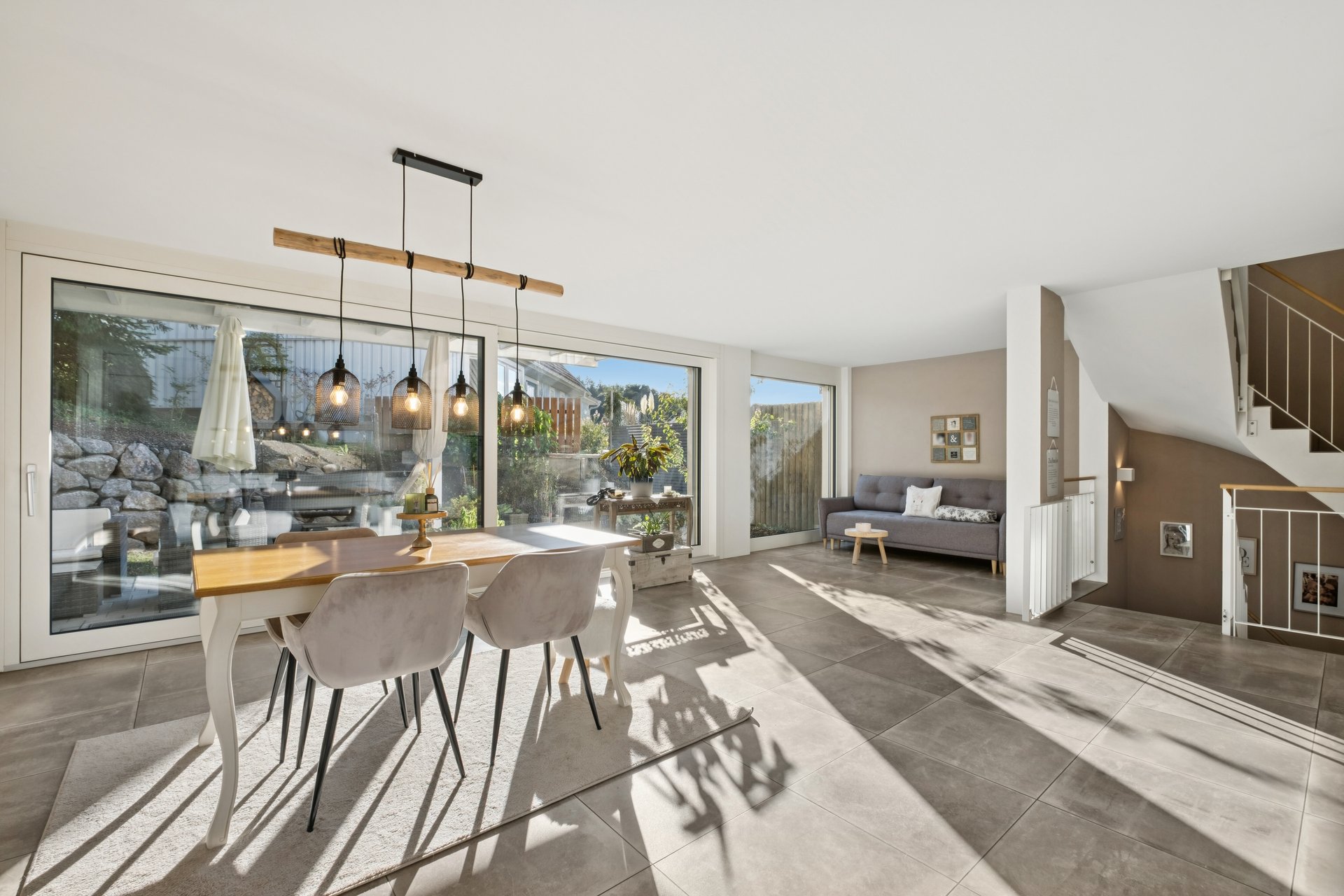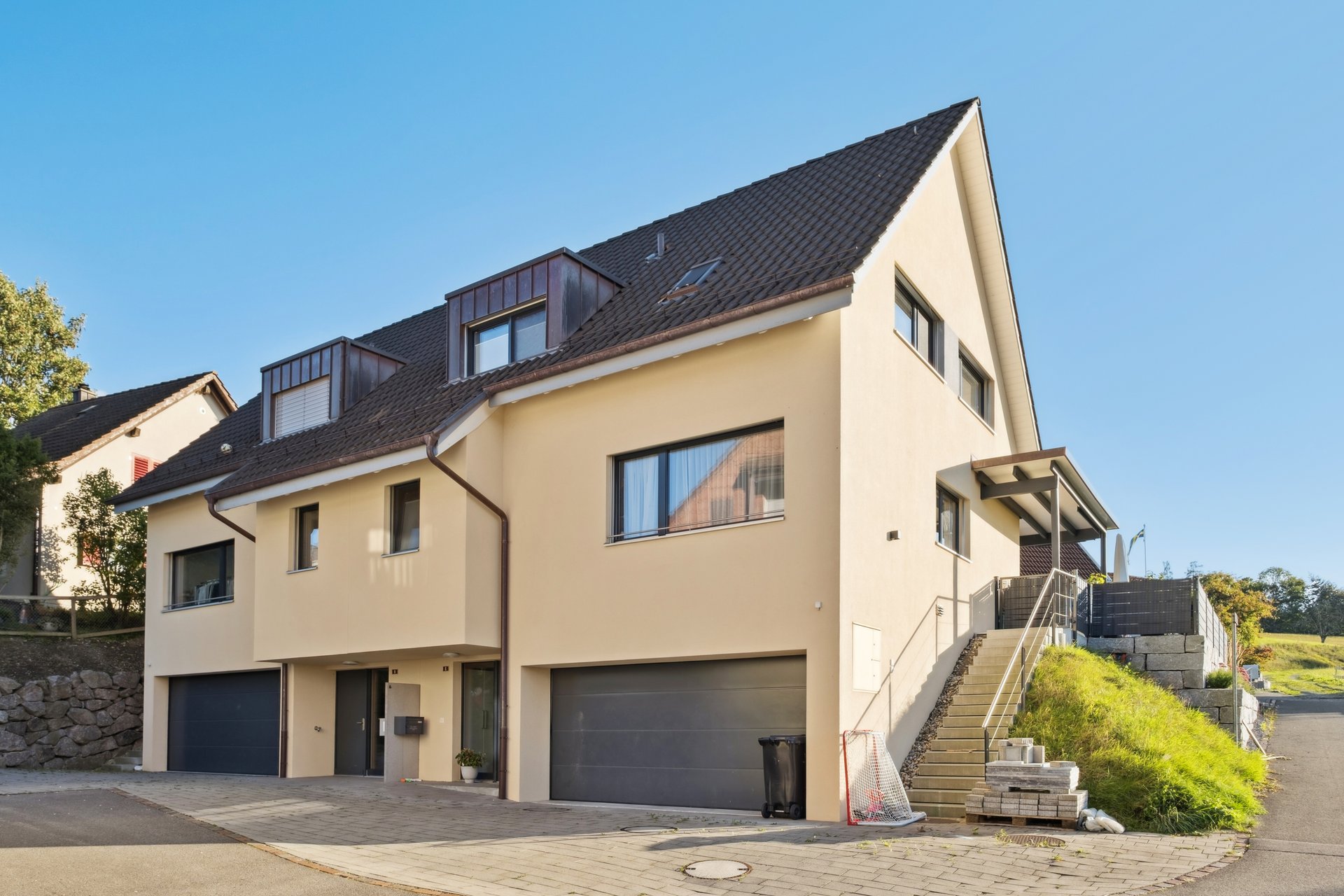 In idyllic location in Flaach, directly adjacent to the agricultural zone, we are selling a modern 5.5-room double detached house, which was built in 2020 and presents itself in mint condition as new.