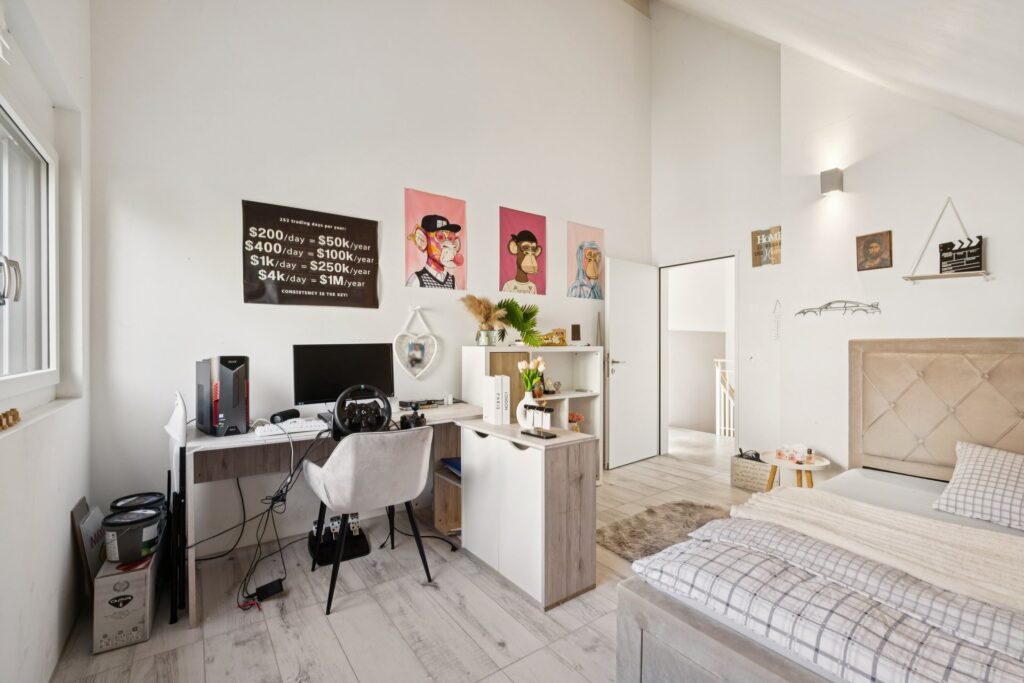 The parking situation is also impressive: A double garage and outdoor parking spaces in front offer sufficient space for vehicles.