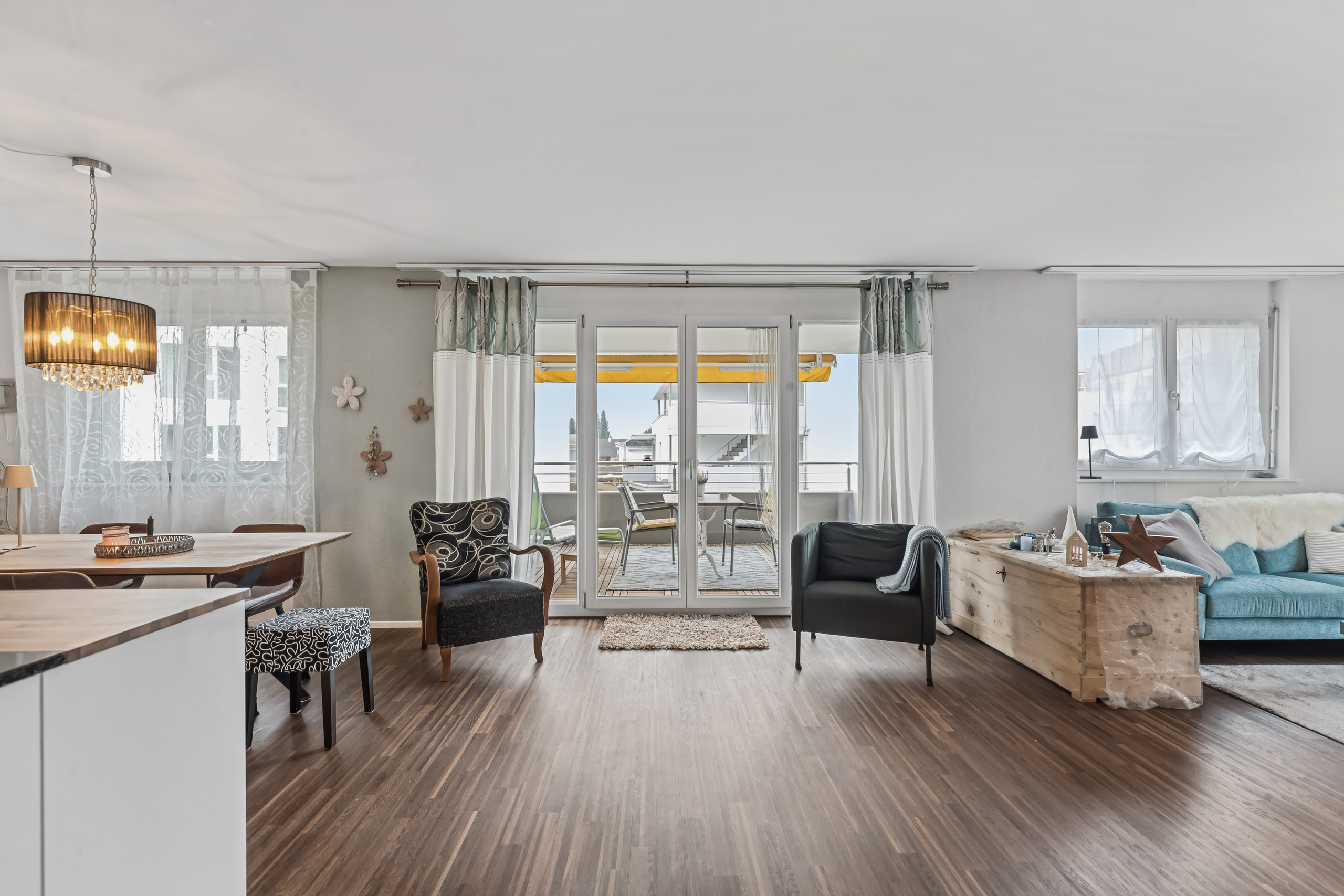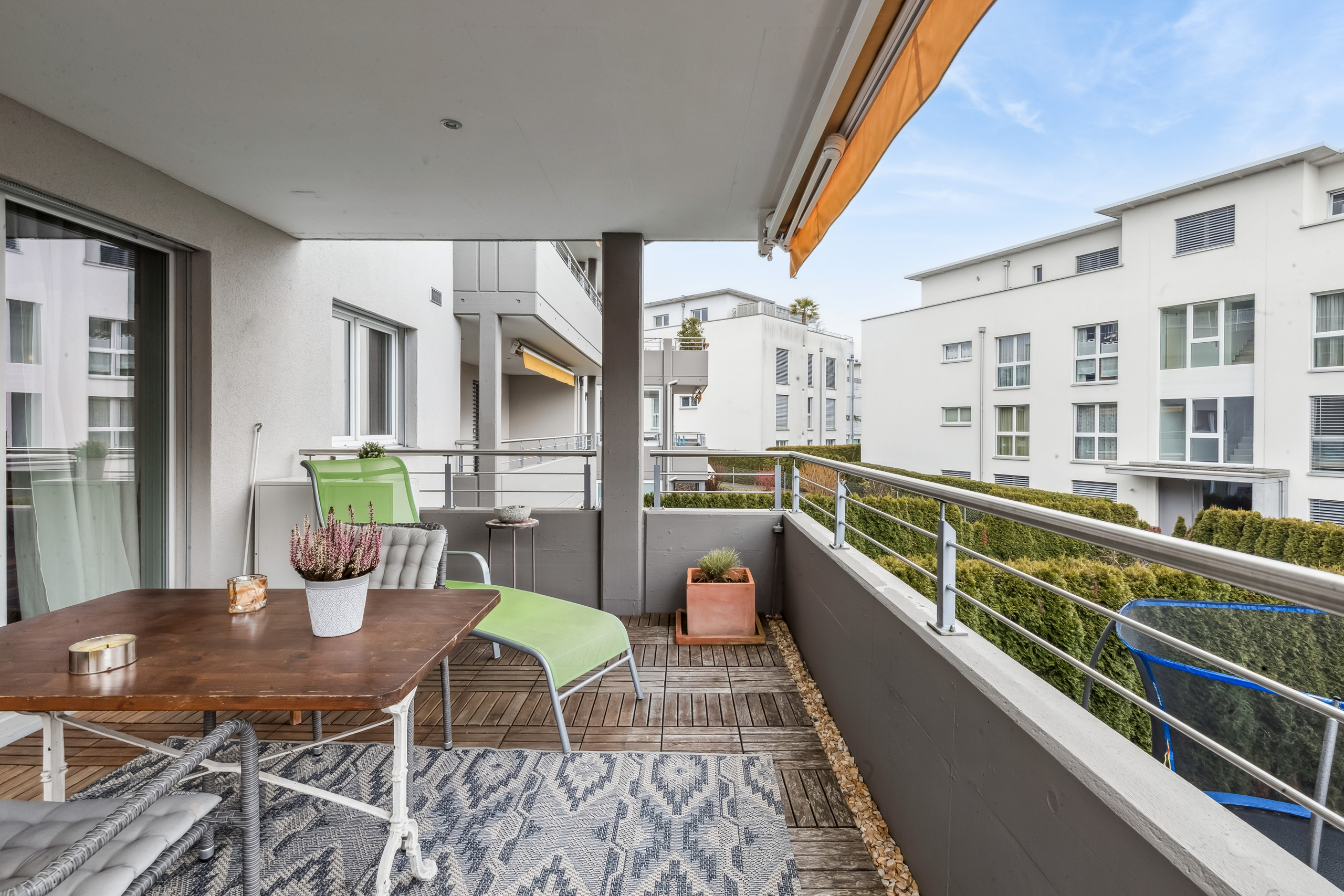 - Living area: Hell living and dining area with direct access to covered balcony