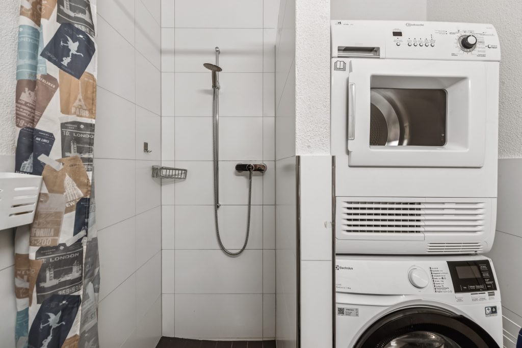 - Wet areas: Two practical wet areas: bath/WC with double lavabo and shower/WC with integrated washing tower