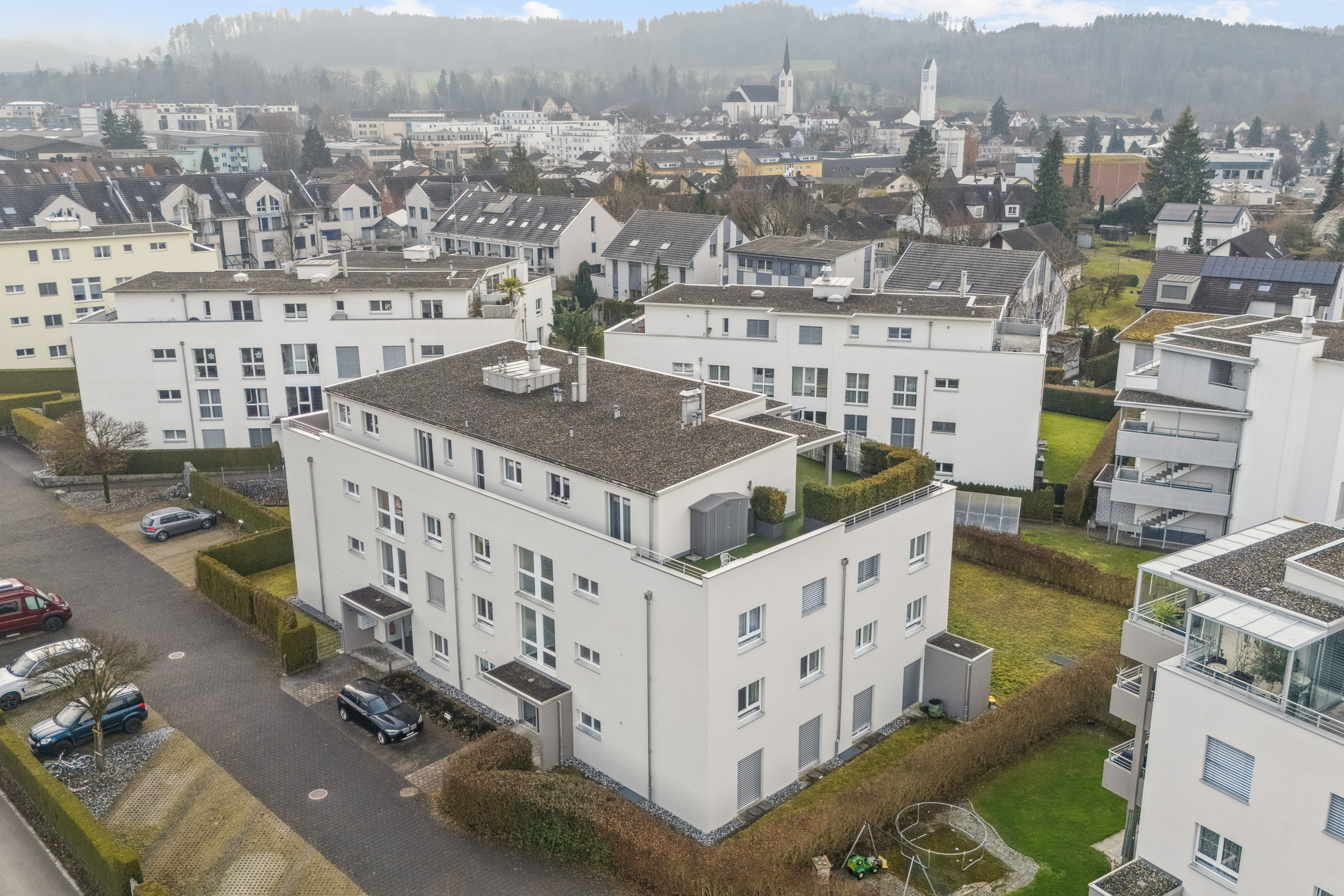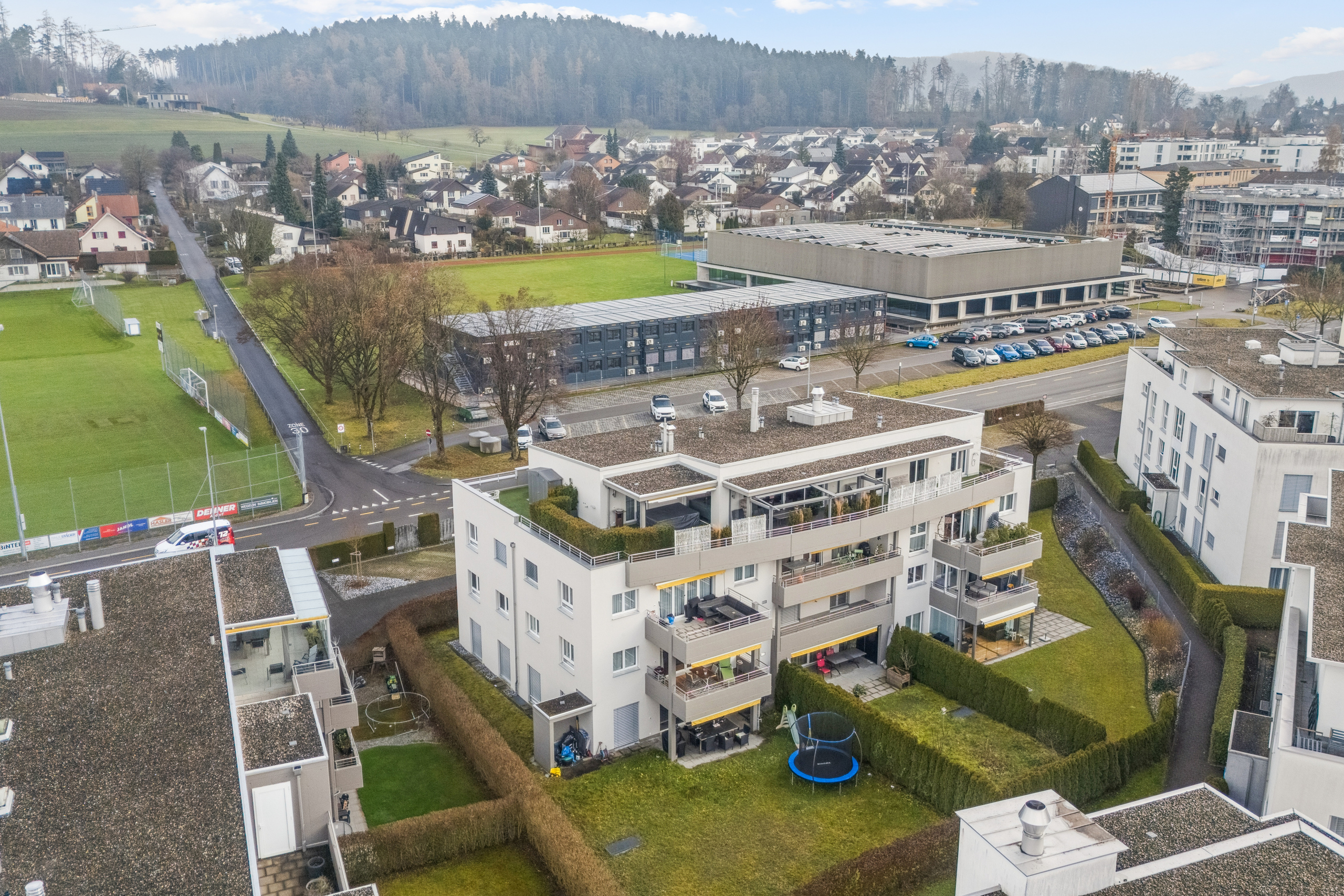 Welcome to your new home in Aadorf! This modern 4.5-room condominium offers you 112 m² of living space with plenty of room to unfold.The apartment was built in 2009 and impresses with a well thought-out floor plan and high-quality materials. The bright living area with access to the balcony invites you to relax and enjoy yourself. The apartment has two fully equipped bathrooms, which offer you additional comfort . The gas heating provides pleasant warmth on cold days. An elevator takes you comfortably to the desired floor. In addition you have your own cellar compartment for additional storage space at your disposal.For your vehicles there is an outdoor parking space and an indoor parking space available. Aadorf itself offers an excellent infrastructure with schools, shopping and leisure facilities in the immediate vicinity. The idyllic surroundings invite you to take walks and relax in the countryside . Don t miss this opportunity and experience modern living comfort in a quiet, family-friendly environment!
