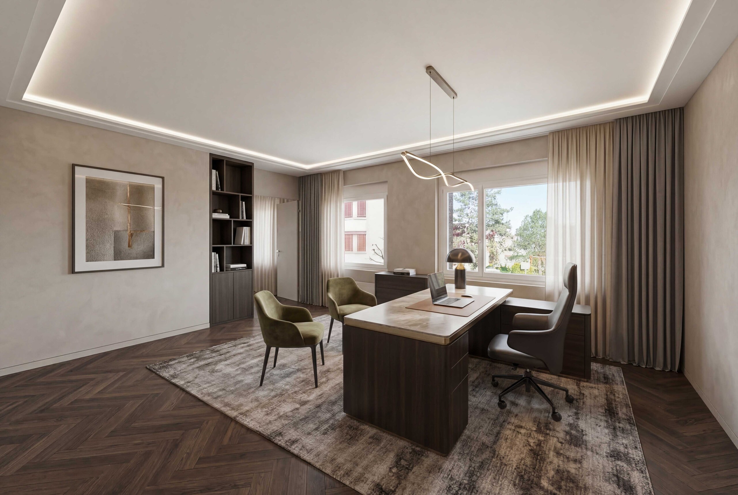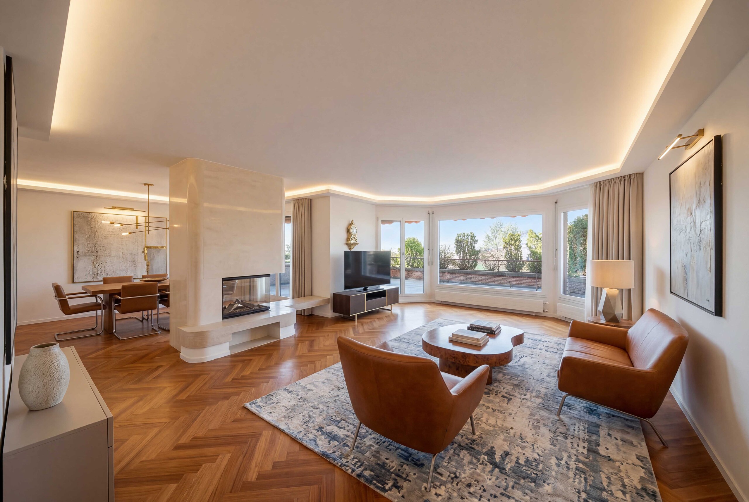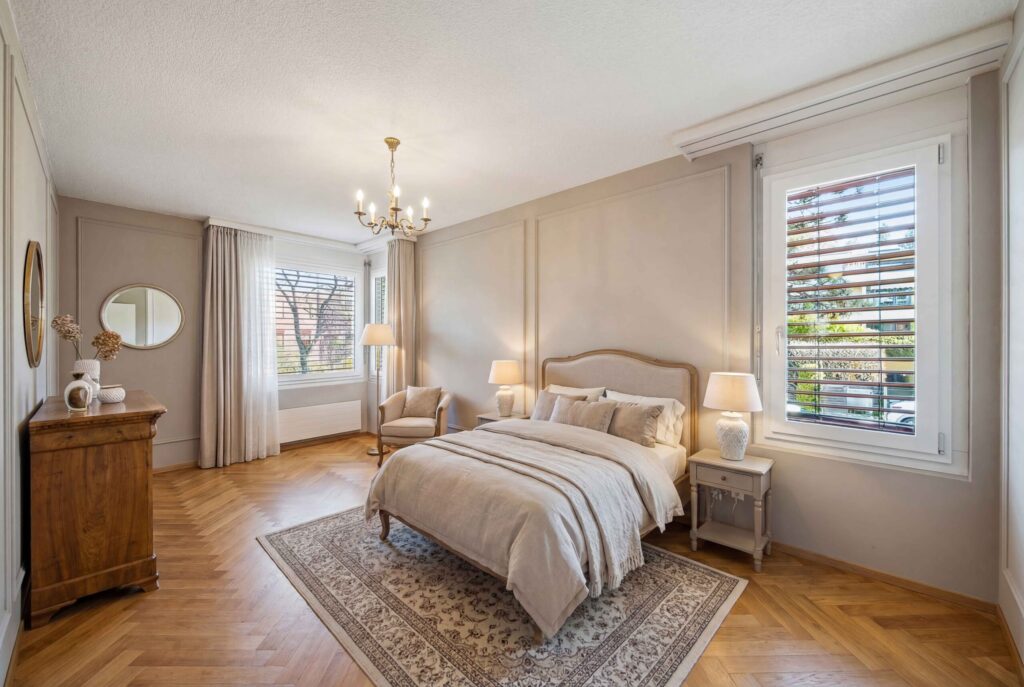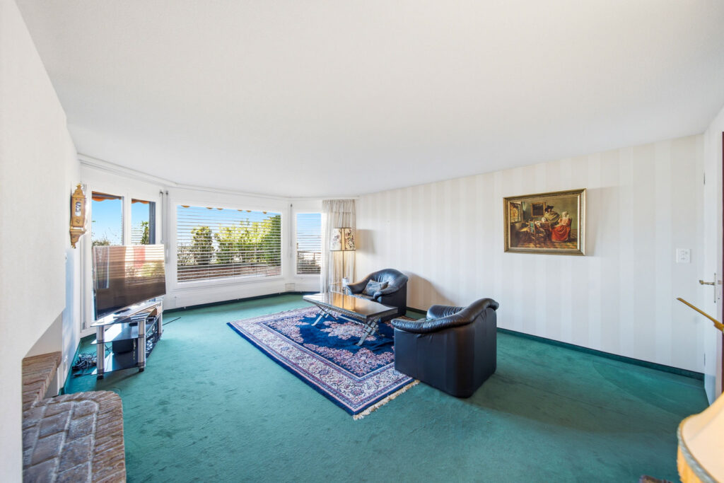 - Wohnkomfort: Ein grosszügig gestalteter Wohn- und Essbereich mit Fensterfronten und stilvollem Cheminée schafft den perfekten Rahmen für entspannte und gemütliche Stunden