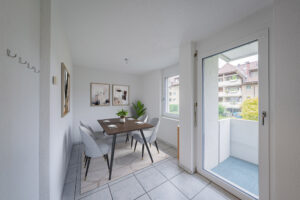 4.5-room condominium in Aarwangen, 89 m², bright living/dining area with balcony (11 m²), open kitchen with granite top, bath/shower/WC. Cellar, private laundry room, bicycle cellar. Outside space incl., garage box optional.