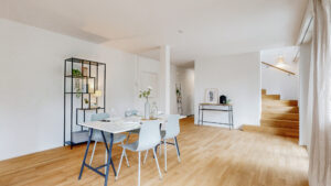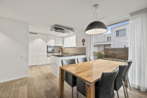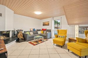 169 m² living space on two floors, living/dining area with fireplace and high ceilings, conservatory and balcony with spectacular lake and mountain views, closed kitchen with natural stone covering, cozy gallery. Family-friendly location with school, daycare, playgrounds and shopping facilities within walking distance. Bus stop directly in front of the house.