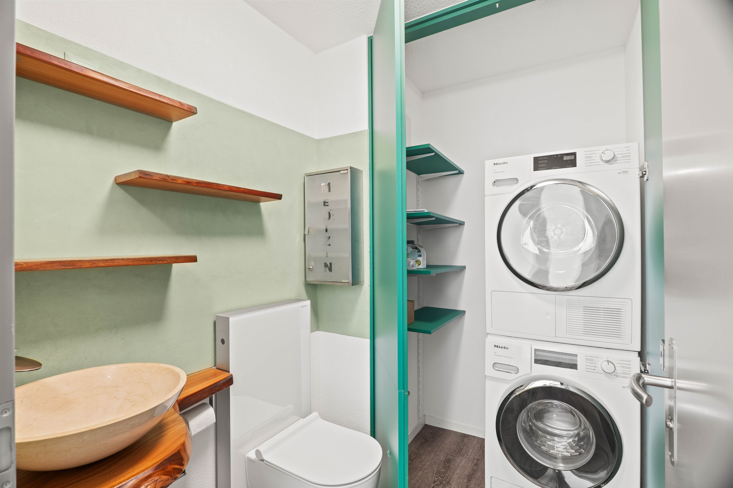 - Zones humides: Deux zones humides pratiques  : douche/WC et WC pour les invités avec tour de lavage astucieusement intégrée
