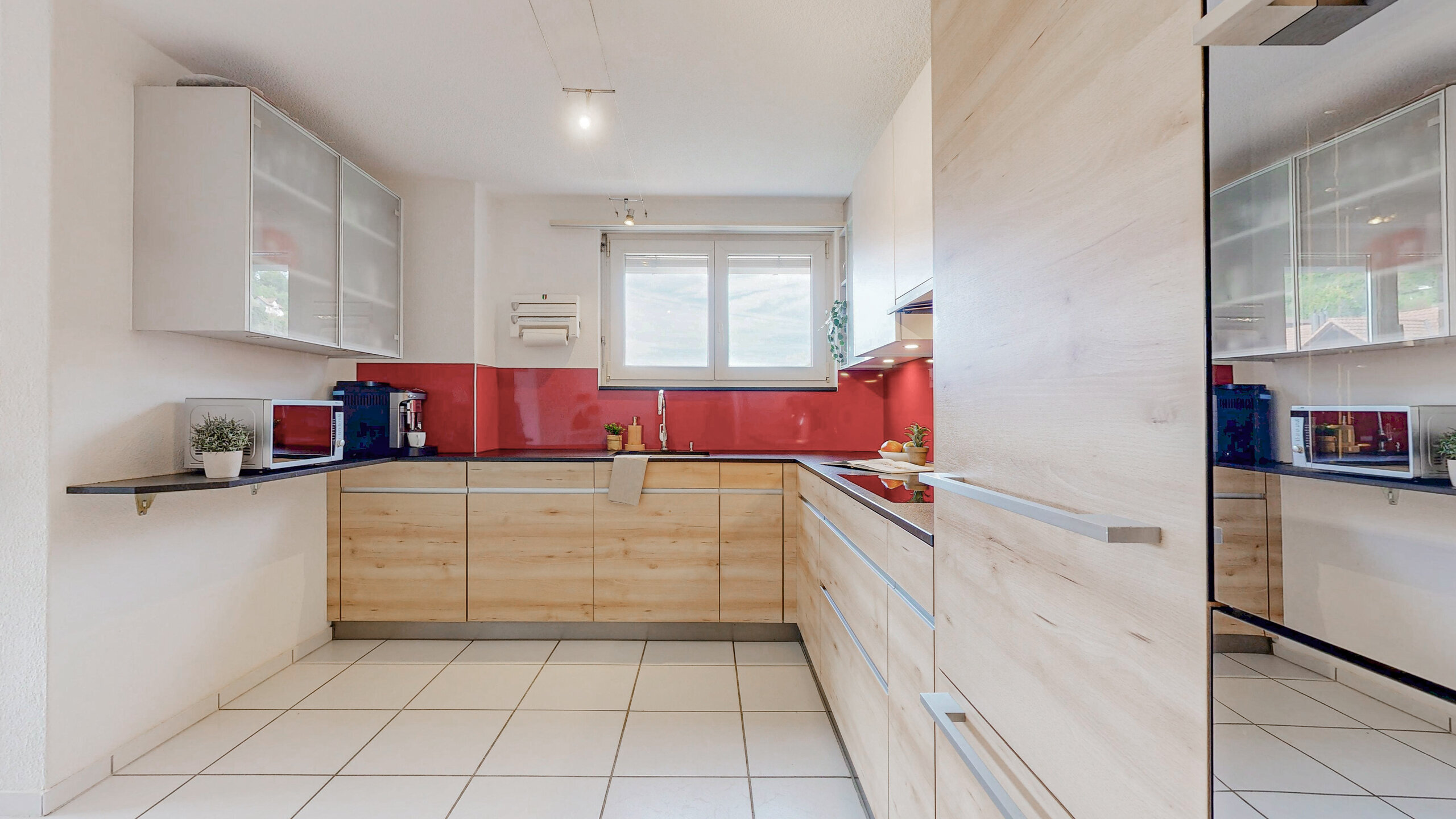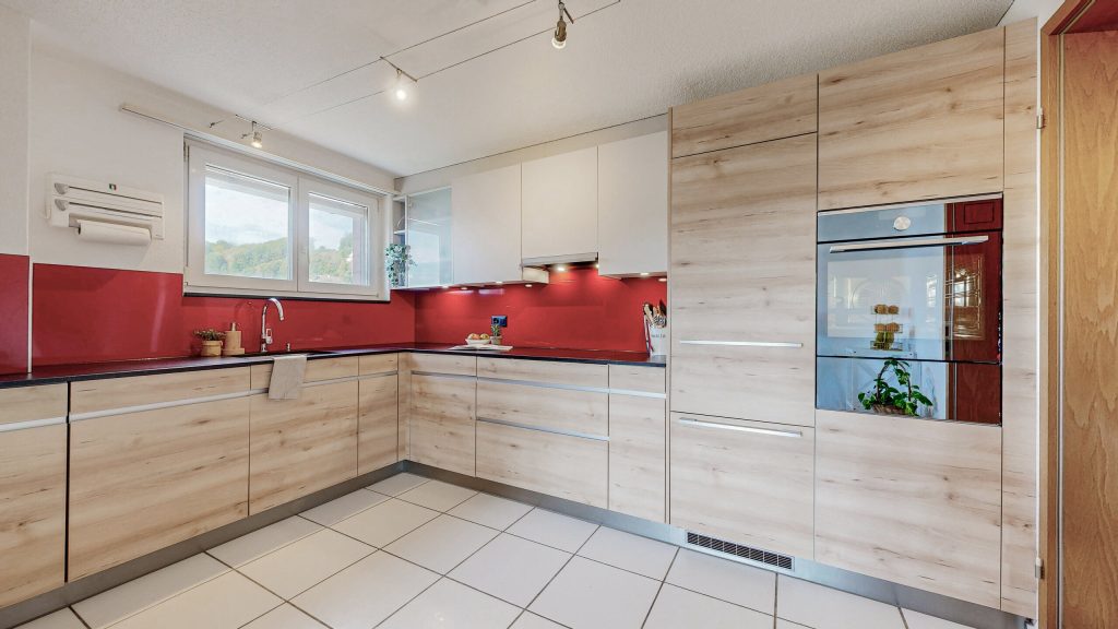 Le grand espace de vie ouvert profite d une large fenêtre qui laisse entrer beaucoup de lumière du jour et donne un effet agréable ouvert à l'espace. La cuisine moderne est conçue de manière généreuse fonctionnelle et n'a été installée qu'en 2019  ;.Elle se trouve en très bon état et s'intègre harmonieusement dans le concept ouvert d'habitation.