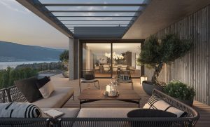 88 m² de surface habitable, lumineux salon salle à manger, cuisine fermée modernes zones humides, terrasse de haute qualité avec jacuzzi et lounge. Deux places de stationnement en option.