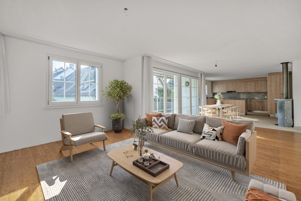4.Appartement de 5 pièces à Niederglatt-Nöschikon avec 137 m², salon salle à manger ouvert, poêle suédois, cuisine avec îlot de cuisson, grand balcon, 2 zones humides, ascenseur et place de parking souterrain en option.