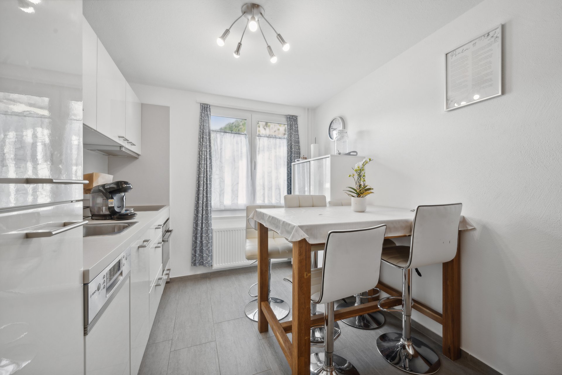 Su 82 m² di spazio abitativo si trova un luminoso soggiorno e zona pranzo con accesso diretto al balcone, una cucina chiusa e un bagno e una cucina con accesso al balcone;cucina chiusa con ampio ripostiglio e spazio per un tavolo da colazione nonché una moderna zona umida con doccia/WC.Grazie alle numerose finestre, tutti gli ambienti sono inondati di luce naturale e offrono una piacevole sensazione di spazio.