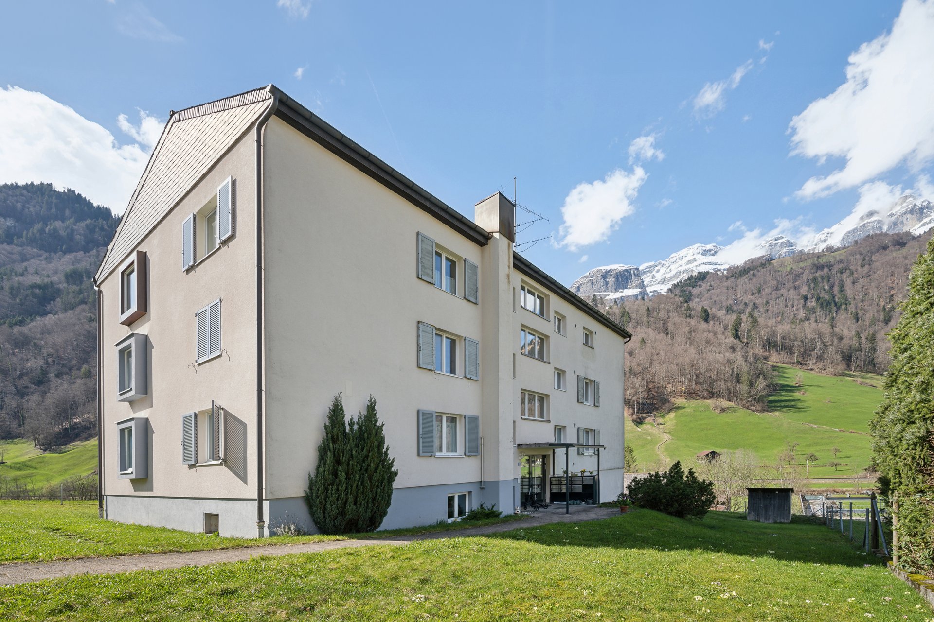 Al centro delle montagne di Glarona, nella parte del villaggio Hätzingen del comune di Glarona Sud, questo condominio di 4,5 locali ben tenuto è in vendita.Sia come investimento che per una successiva occupazione da parte del proprietario - l'appartamento convince per le condizioni ben tenute condizioni, stanze luminose e una posizione che combina natura e tranquillità con pratiche infrastrutture .