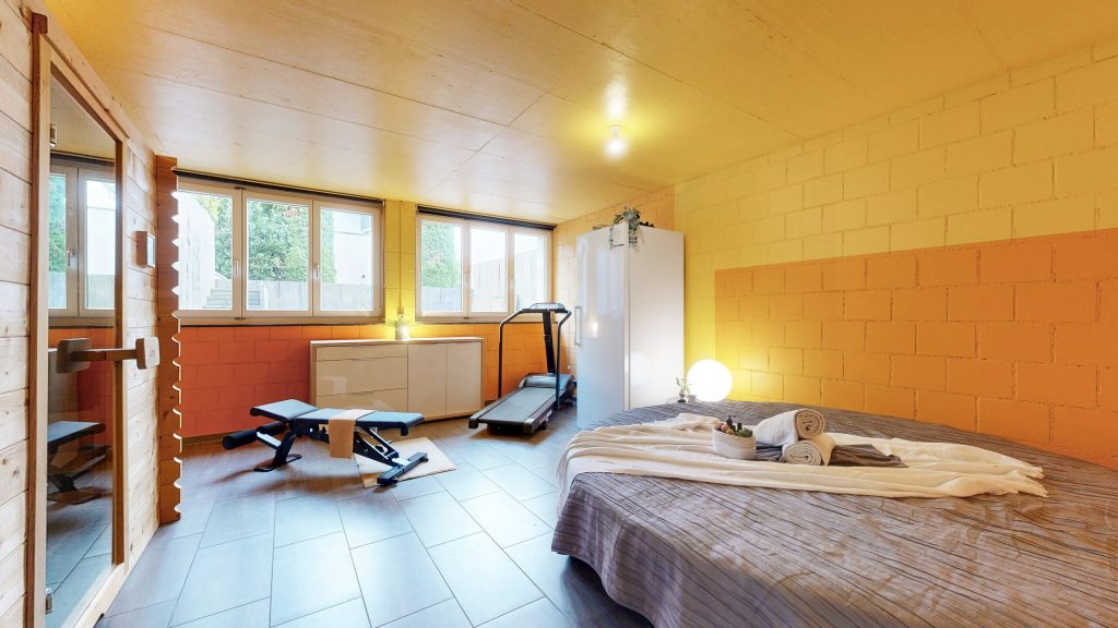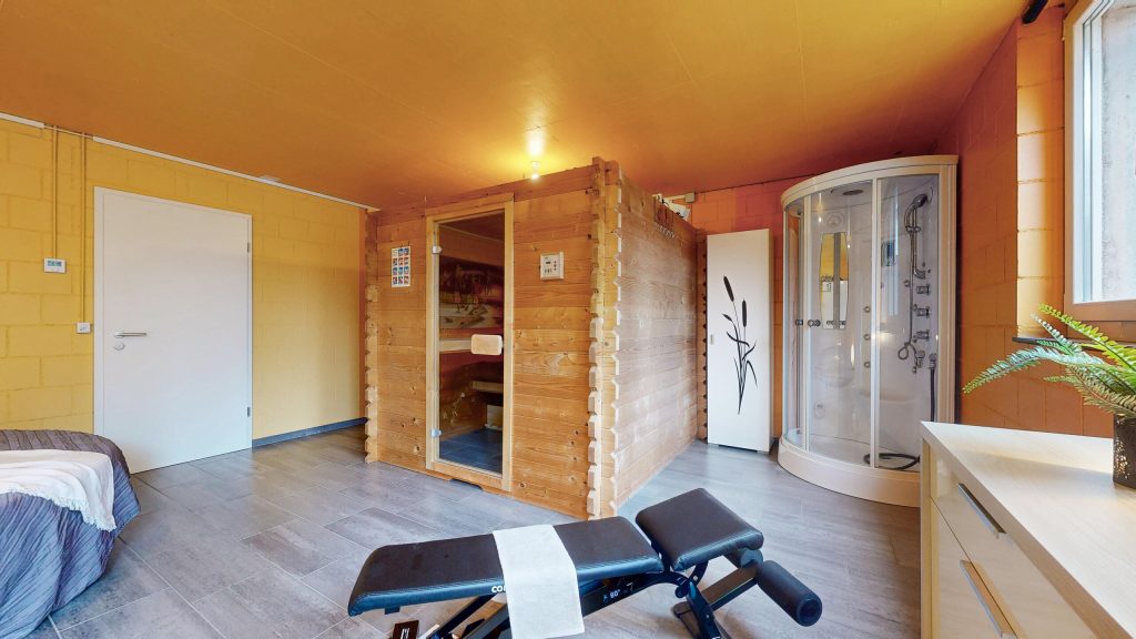 Chi apprezza la salute e il relax apprezzerà in particolare la sala fitness privata con sauna e doccia .Anche l'area esterna è impressionante: Un’imponente piscina con terrazza solarium, aree salotto in giardino rivolte a sud e a ovest, un’area verde ben curata con diverse aree di sosta e aree di relax per il relax;con diverse piantumazioni e una serra che creano un’esperienza di vita e stile di vita in campagna.