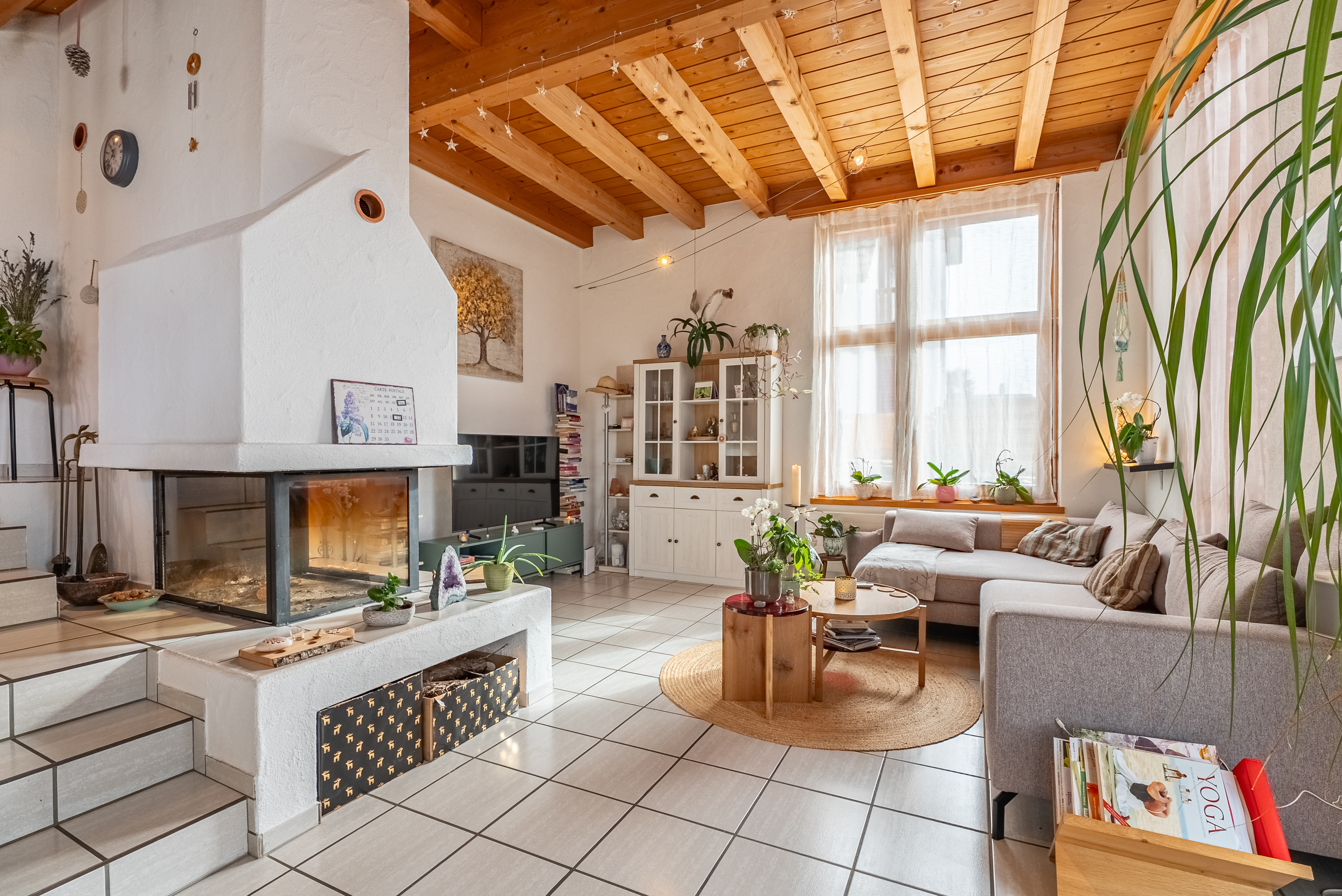 - Rappresentativa zona giorno con pianta aperta accogliente camino, soffitti altissimi e accesso diretto all’area esterna
