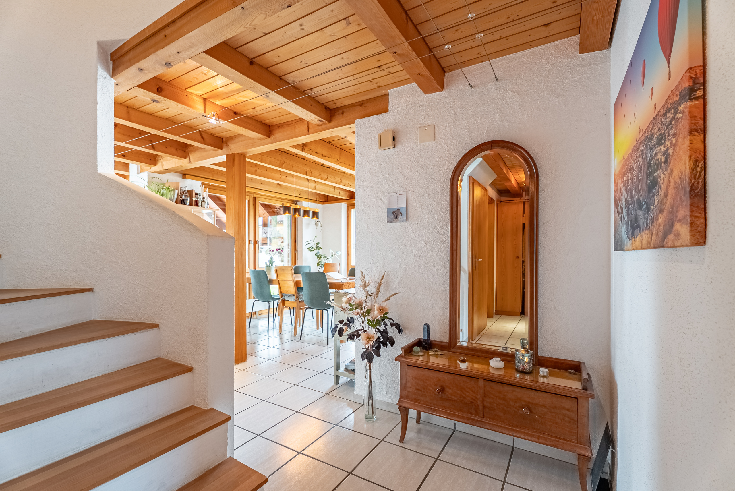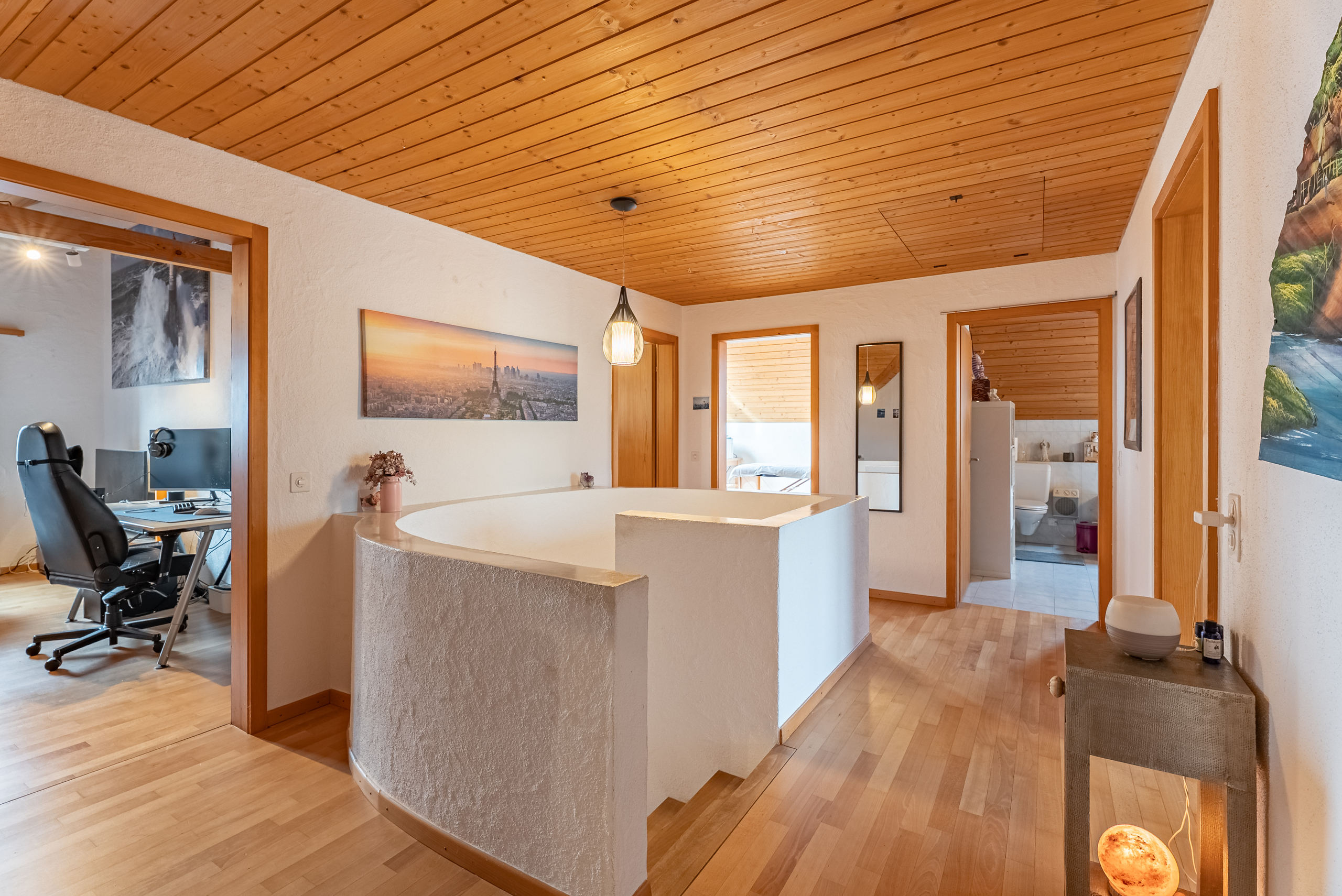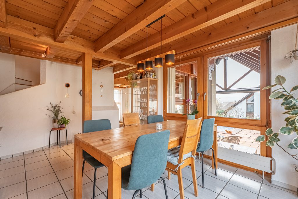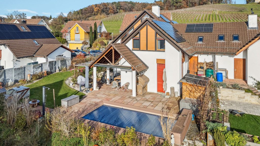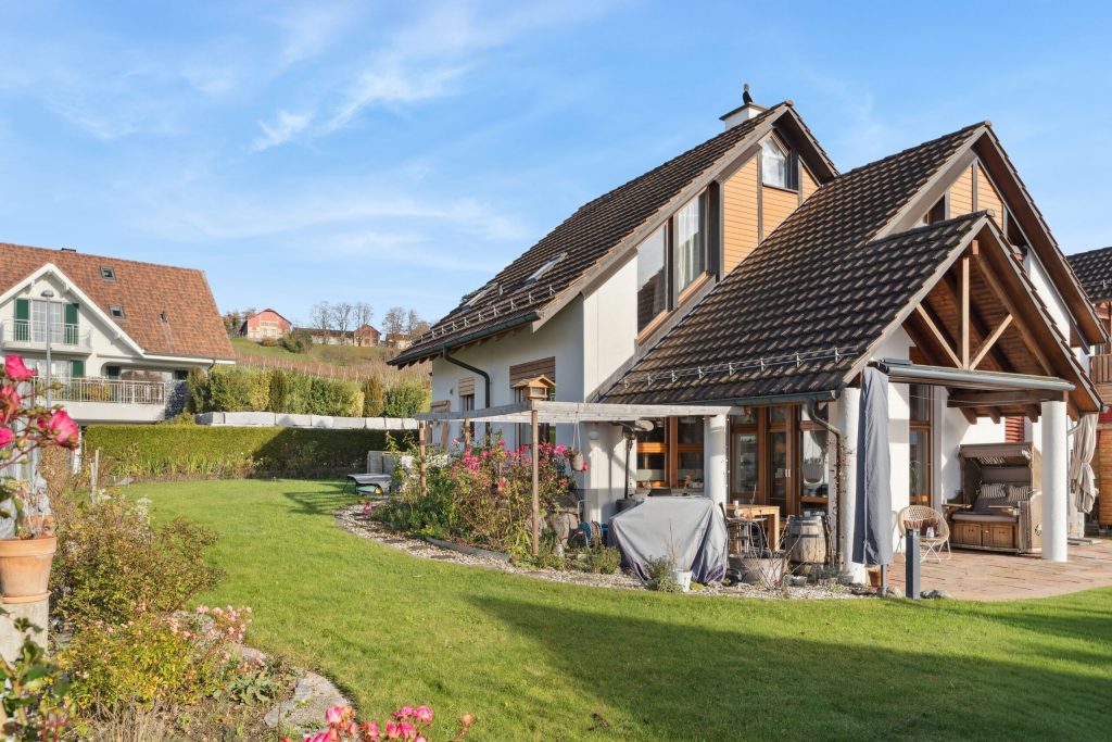 Benvenuti a questa affascinante casa indipendente nel villaggio - il rifugio perfetto per le famiglie! Con 7.5 camere e una generosa superficie abitativa di 197 m² questa casa offre spazio sufficiente per i vostri sogni abitativi individuali.La pianta ben studiata crea un'atmosfera invitante, mentre la spaziosa terrazza di 27 m² è ideale per rilassarsi all'aria aperta. Costruita nel 1989 e ristrutturata per l'ultima volta nel 2024, questa casa combina il fascino classico con il moderno comfort.La sauna invita a rilassarsi e la spaziosa cantina e la soffitta offrono ulteriore spazio per tutte le vostre esigenze. Il quartiere di Dorf colpisce per la posizione idilliaca e la vicinanza alla natura. Qui si può godere della tranquilla vita di campagna e si è comunque ben collegati alle infrastrutture urbane . La regione offre numerose opportunità di svago, dall'escursionismo al ciclismo, ed è ideale per famiglie, che prediligono uno stile di vita attivo e amante della natura .Lasciatevi incantare da questa casa unica e sperimentate una vita piena di comfort e armonia nel villaggio.