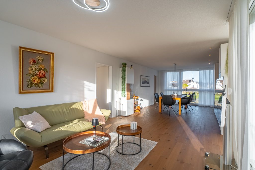 In una posizione idilliaca direttamente adiacente alla zona agricola vendiamo centralmente a Reinach un nuovissimo appartamento mansardato di 3,5 locali, che è stato costruito solo nel 2023.L'appartamento combina tranquillità, architettura moderna ed elevato comfort abitativo - una casa, che colpisce fin dal primo momento.
