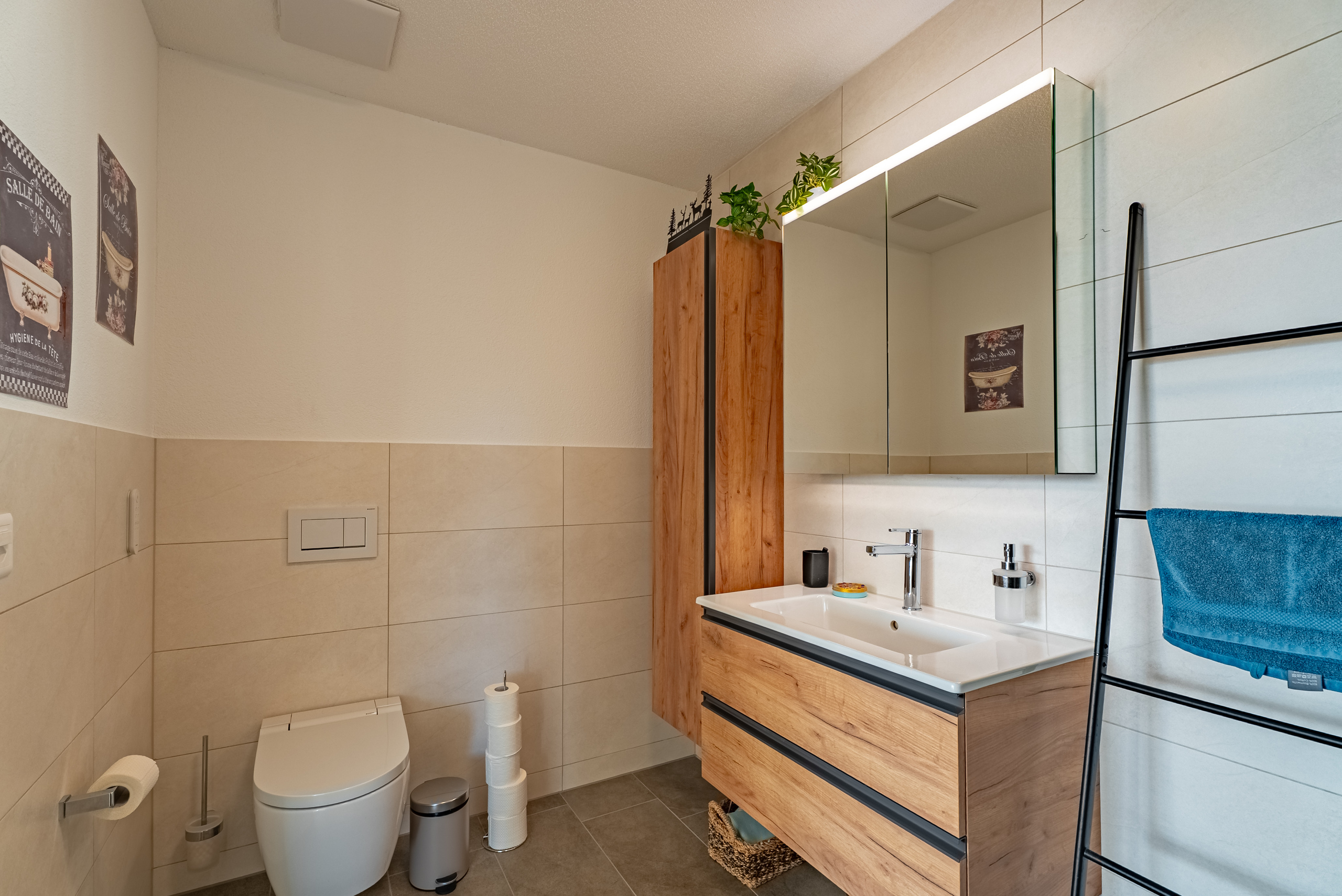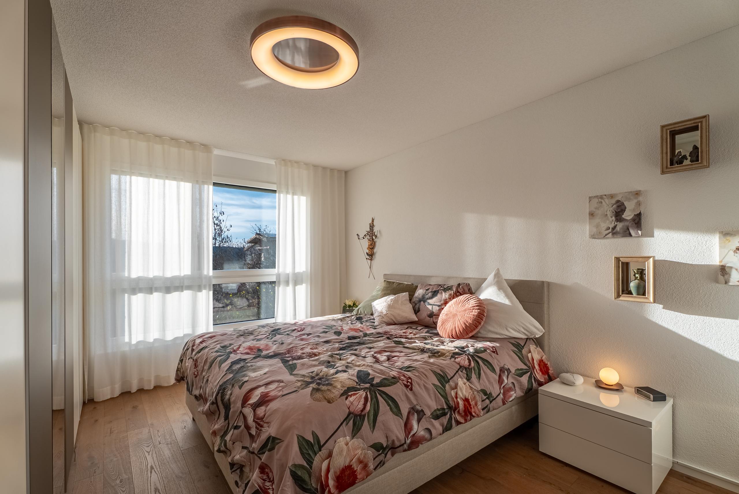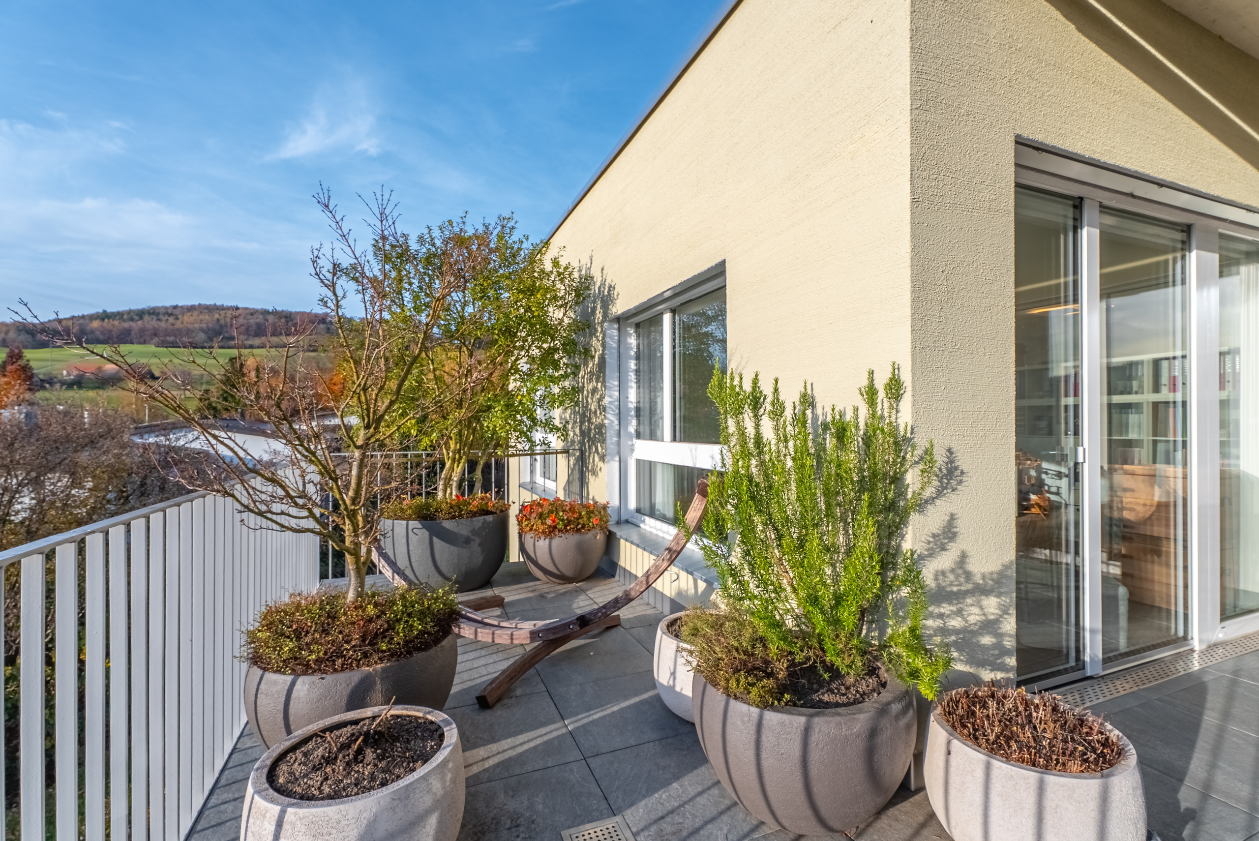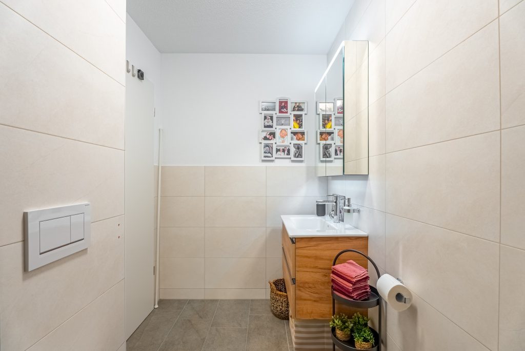 La camera da letto padronale offre accesso diretto al lussuoso bagno in camera con doccia walk-in e un wc doccia di alta qualità Geberit.Una propria lavatrice con asciugatrice fornisce ulteriore comfort.