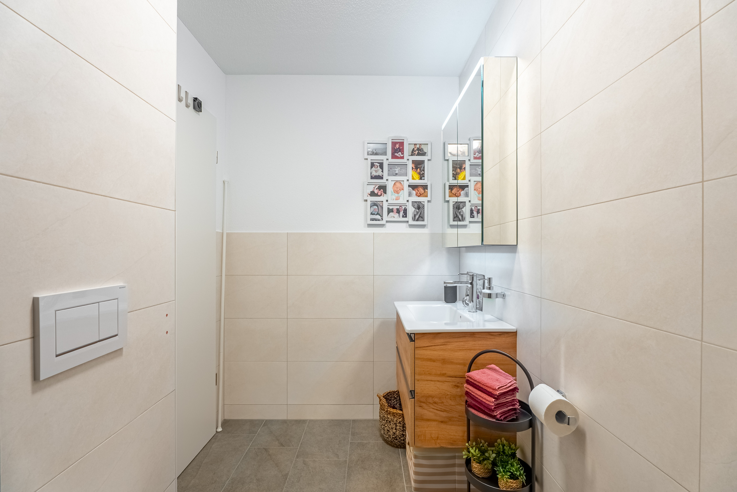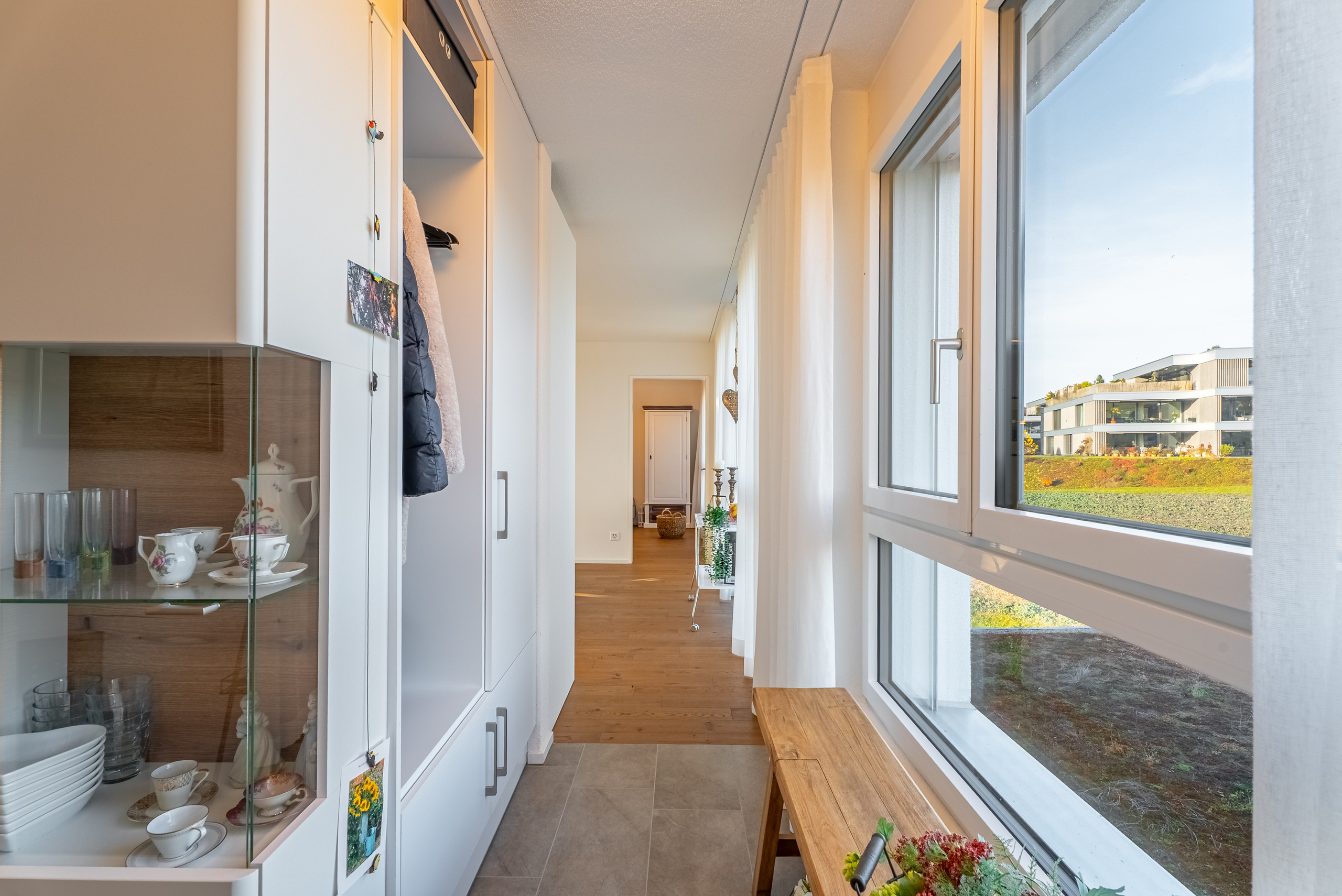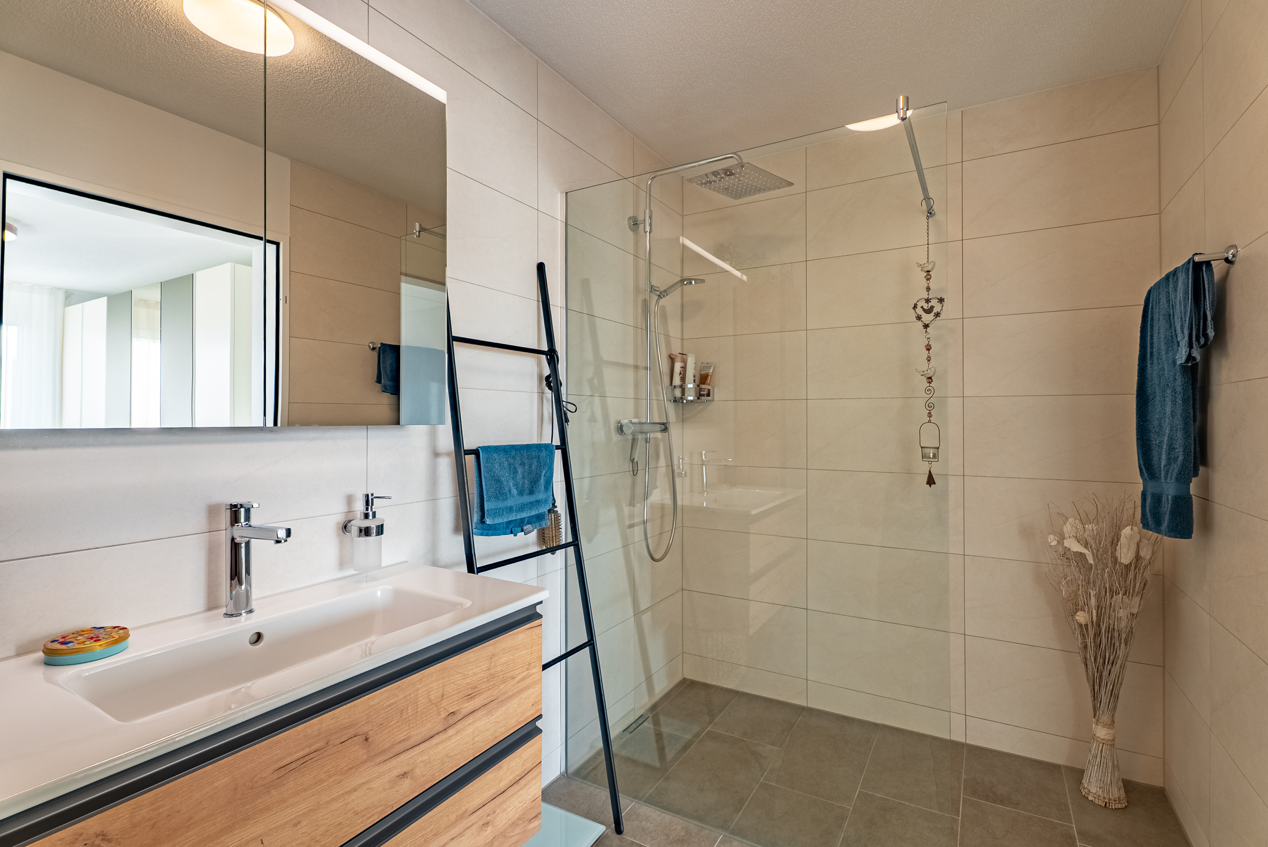 La camera da letto padronale offre accesso diretto al lussuoso bagno in camera con doccia walk-in e un wc doccia di alta qualità Geberit.Una propria lavatrice con asciugatrice fornisce ulteriore comfort.