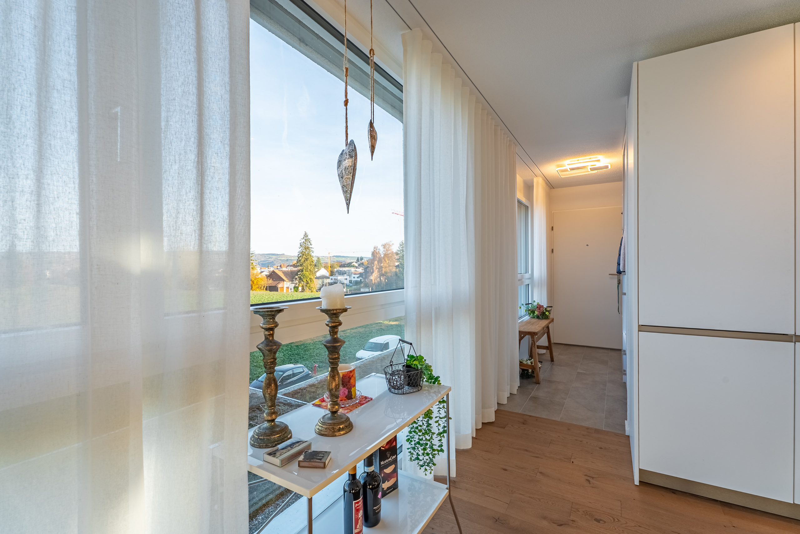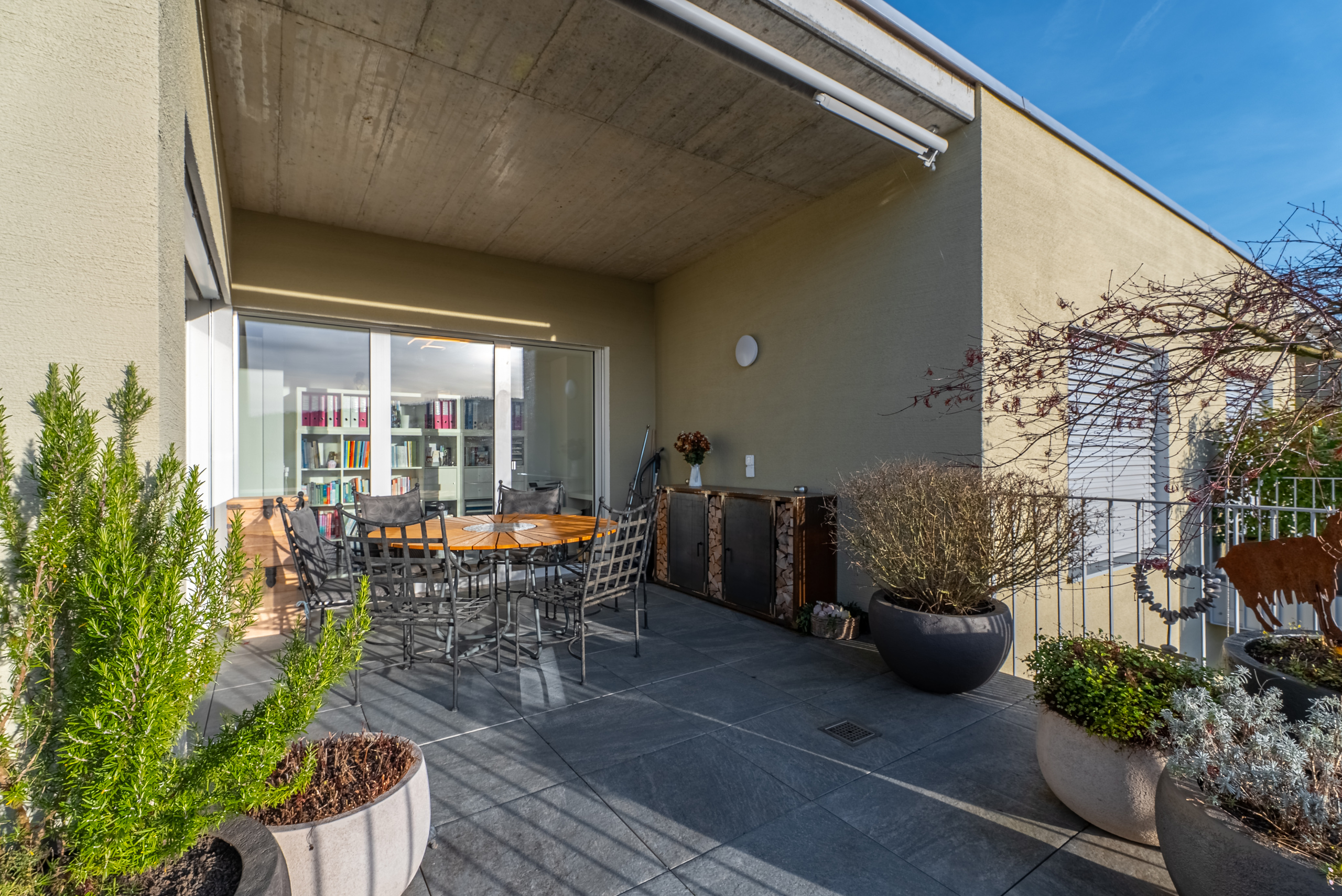 Il punto forte dell'appartamento è la spaziosa terrazza solarium - un luogo per ore di relax, vista di ampio respiro e vera qualità di vita.Due posti auto coperti direttamente presso la casa completano l'offerta.