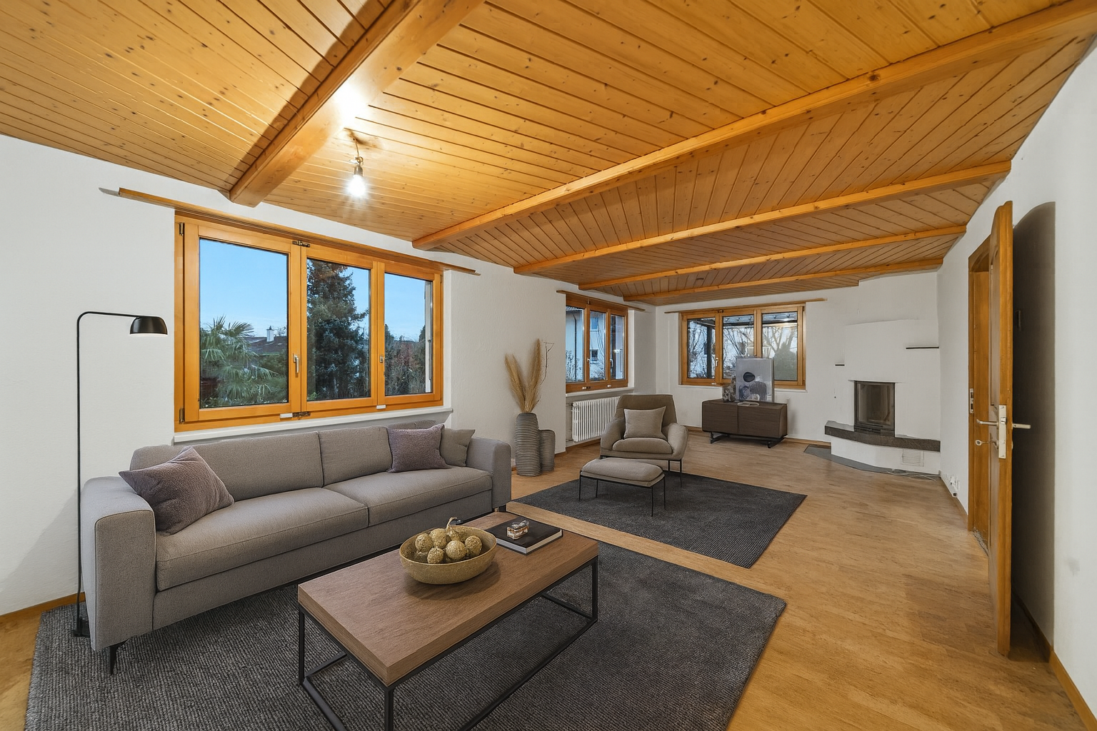 - Che bella zona giorno con caratteristici elementi in legno e accogliente caminetto