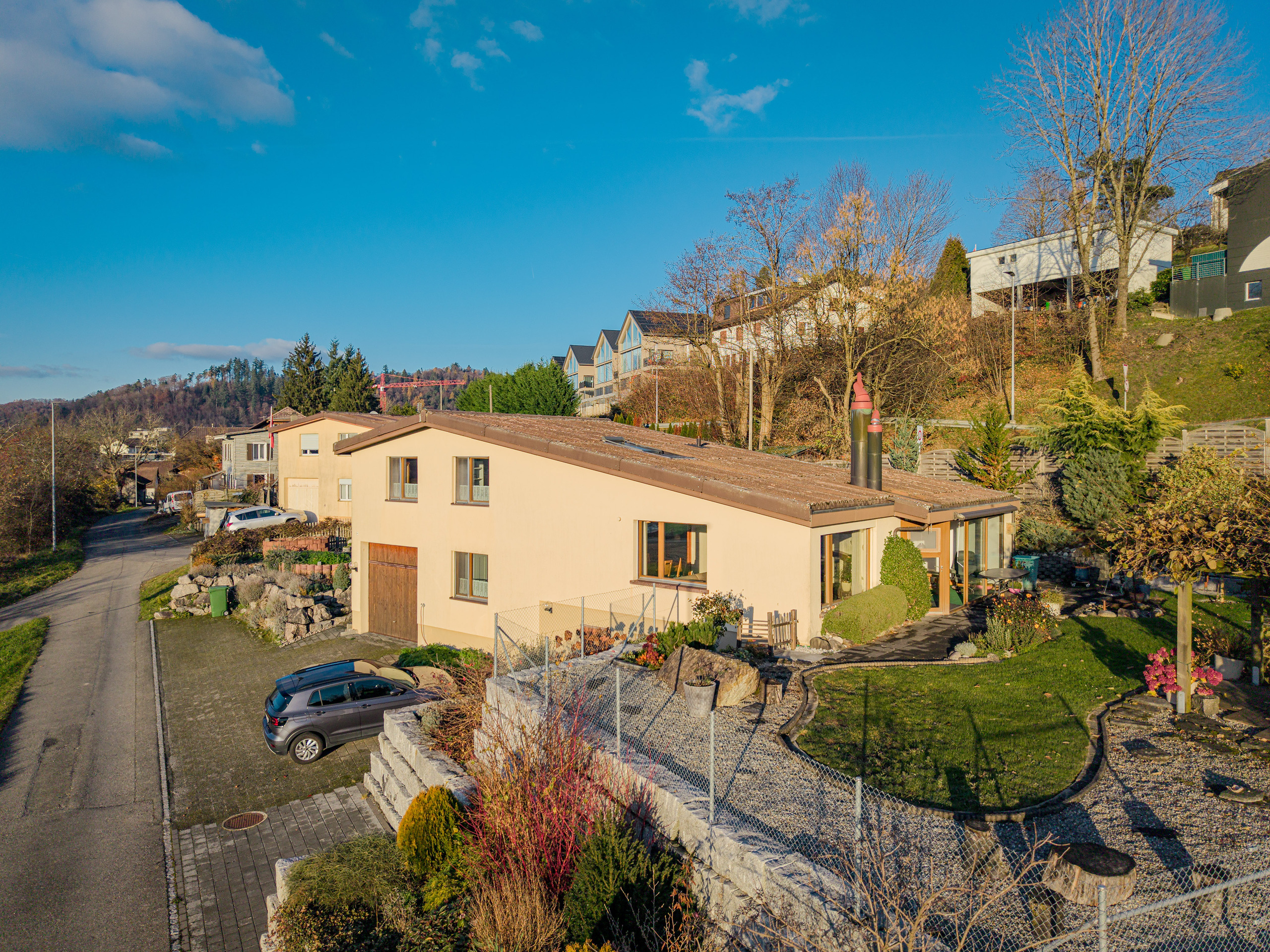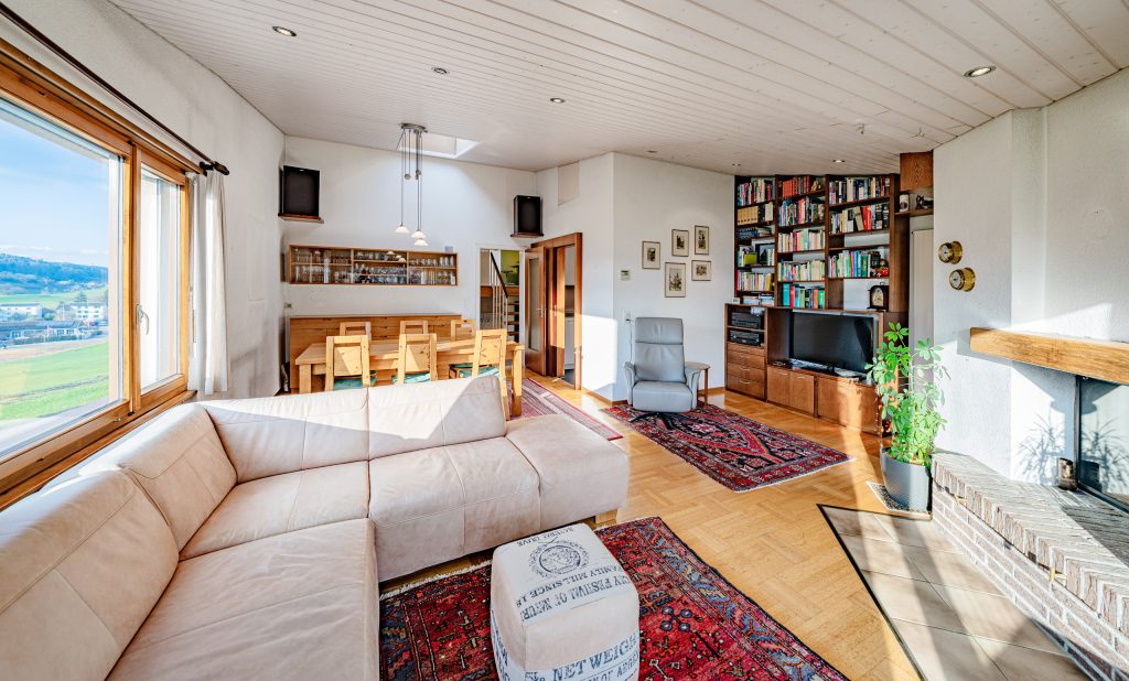Benvenuti alla vostra nuova casa a Moosleerau! Questa affascinante casa indipendente di 5.casa indipendente di 5 locali vi invita a realizzare il vostro sogno di una vita accogliente e confortevole su 118 m² di spazio abitativo .La casa è stata costruita nel 1969, ma offre molti comfort contemporanei, che vi delizieranno. Il luminoso giardino d'inverno è un punto forte e offre un meraviglioso rifugio per tutto l'anno e la casa.Godetevi serate rilassanti davanti al camino scoppiettante o rilassatevi dopo una lunga giornata nella vostra sauna privata.La spaziosa terrazza invita a trascorrere ore socievoli all'aperto e l'area salotto del giardino offre ulteriore spazio per i barbecue estivi. Una moderna pompa di calore assicura un riscaldamento efficiente ed ecologico in tutta la casa.Una cantina offre ampi spazi di stoccaggio, mentre il box e il parcheggio esterno forniscono a voi e ai vostri ospiti comode possibilità di parcheggio. Moosleerau è un idilliaco villaggio, noto per la sua atmosfera tranquilla e familiare La zona circostante offre magnifici paesaggi naturali e numerose opportunità ricreative.Qui potrete godere della pace e vivere vicino ai servizi urbani . Non perdetevi questa incantevole casa e sperimentate come comfort e natura si combinano in perfetta armonia