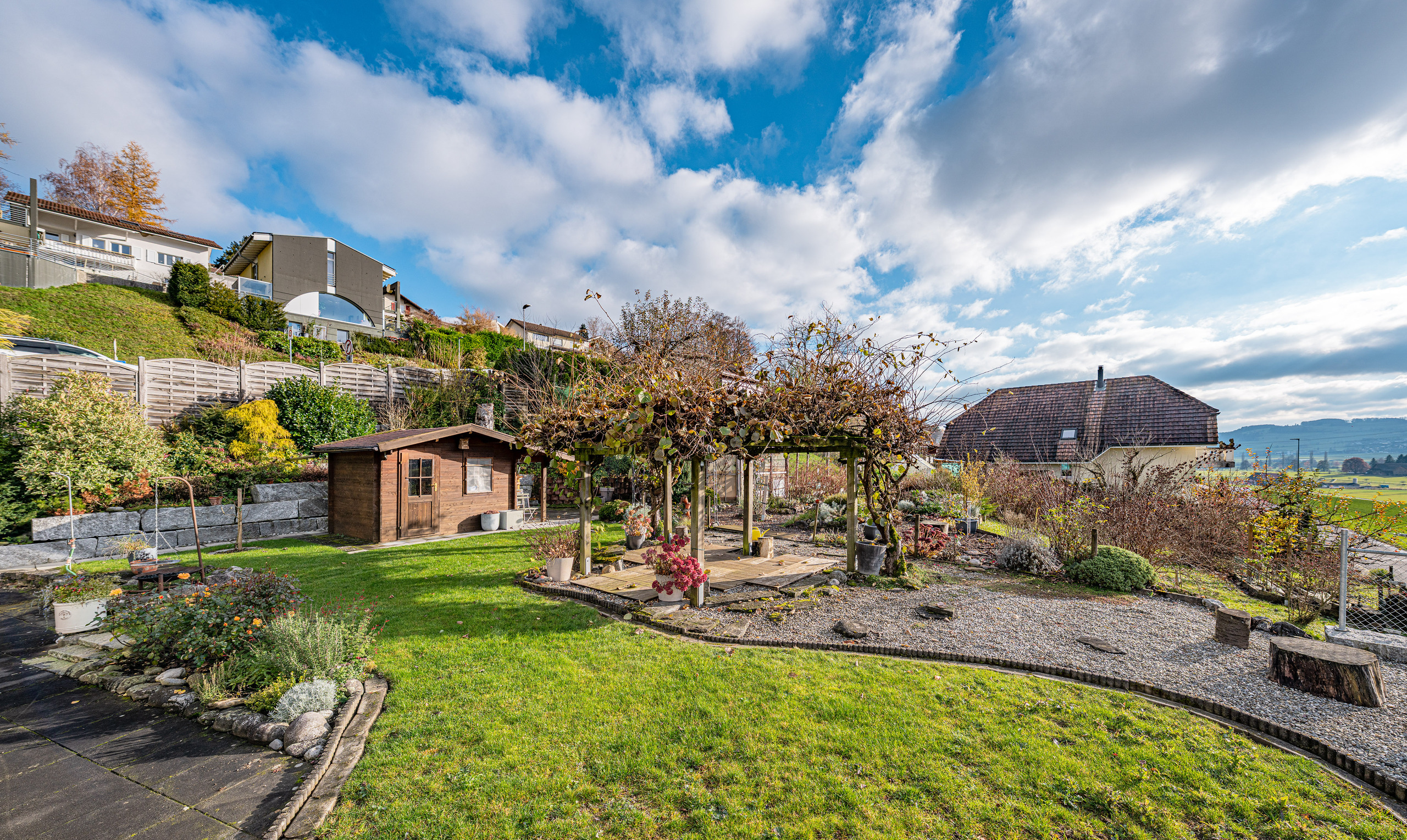 - Caratteristiche speciali: Giardino d’inverno, sauna e una curatissima area salotto in giardino come personale oasi di benessere – veri punti di forza per tutte le stagioni